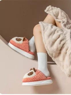 Womens Indoor Warm Fleece Slippers Ladies Girls Cartoon Winter Soft Cozy Booties Non-slip Plush Slip-on7-7.5