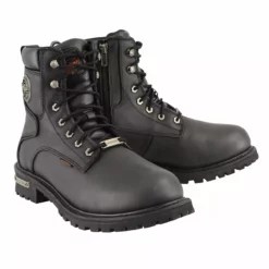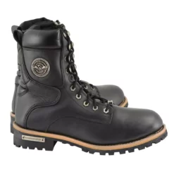 Milwaukee Leather MBM9095 Menâs Classic Black Logger Lace-Up Boots With Side Zipper