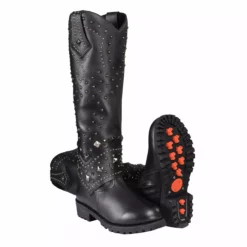 Milwaukee Leather MBL9371 Women’s Black 18 Inch Studded And Riveted Western Style Boots