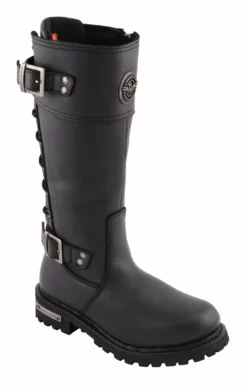 Milwaukee Leather MBL9385 Women’s Black 15-Inch Calf Laced Leather Riding Boots With Side Zipper