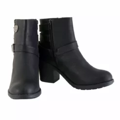 Milwaukee Leather MBL9405 Women’s Short Black Boots With Side Zipper And Triple Buckle Adjustment