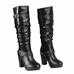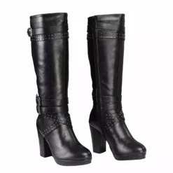 Milwaukee Leather MBL9422 Women’s Tall Black Studded Strap Boots With Platform Heel