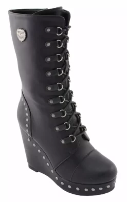 Milwaukee Leather MBL9438 Women’s Black Lace-Up Boots With Platform Wedge