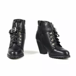 Milwaukee Leather MBL9431 Women’s Black Lace-Up Boots With Block Heel And Buckle Strap
