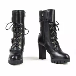Milwaukee Leather MBL9459 Women’s Black Leather Buckles Platform Boots With Lace-Up Closure