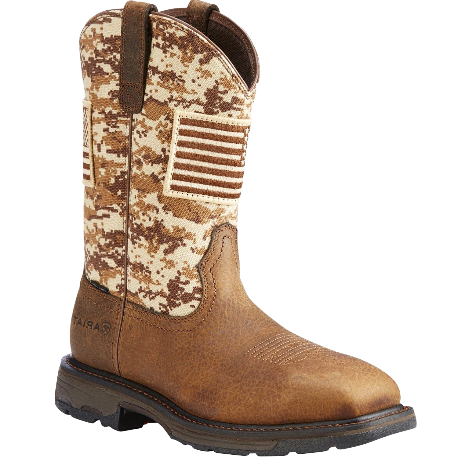 Ariat Men’s Brown Workhog Patriot Square Steel Toe Work Boots 10022968