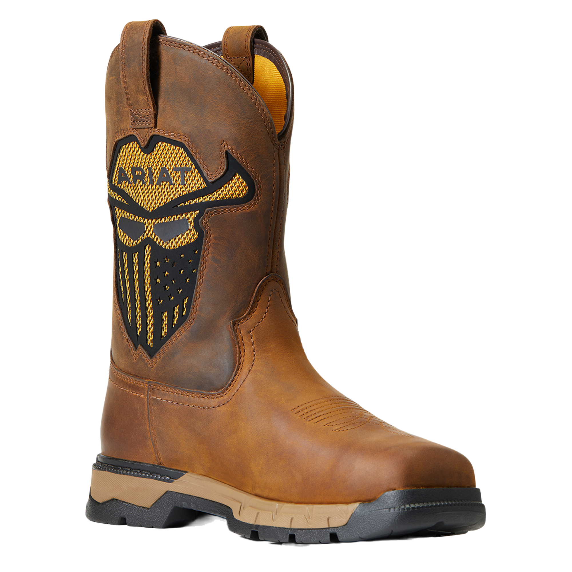 - Ariat skull with American Flag Mask on upper.
