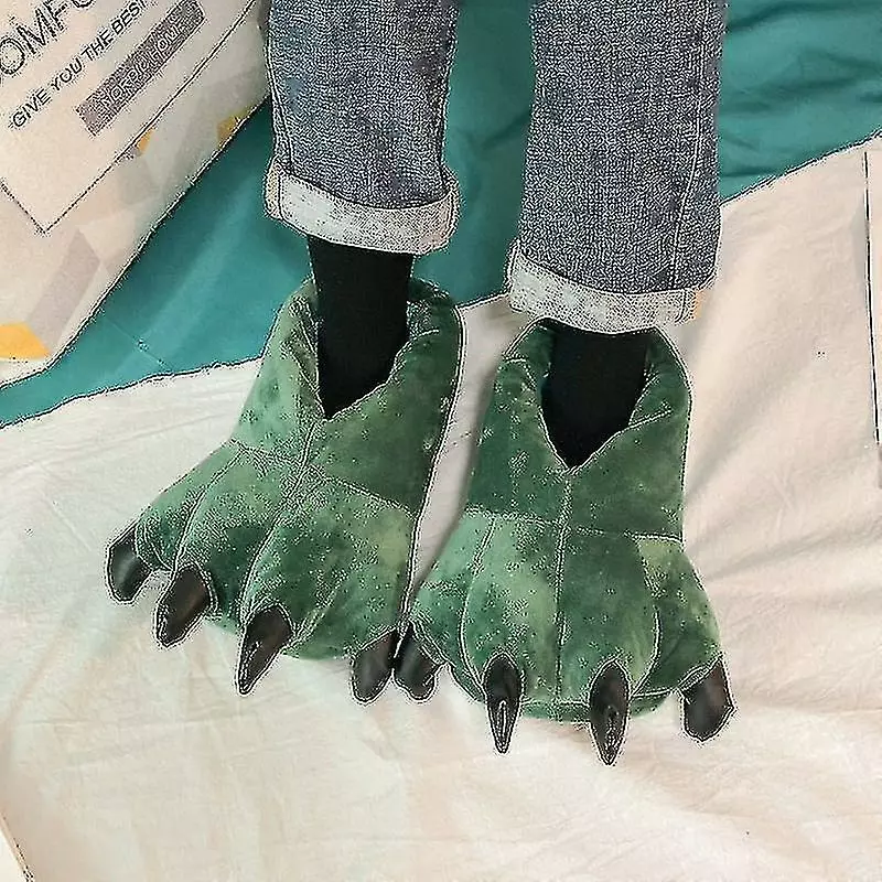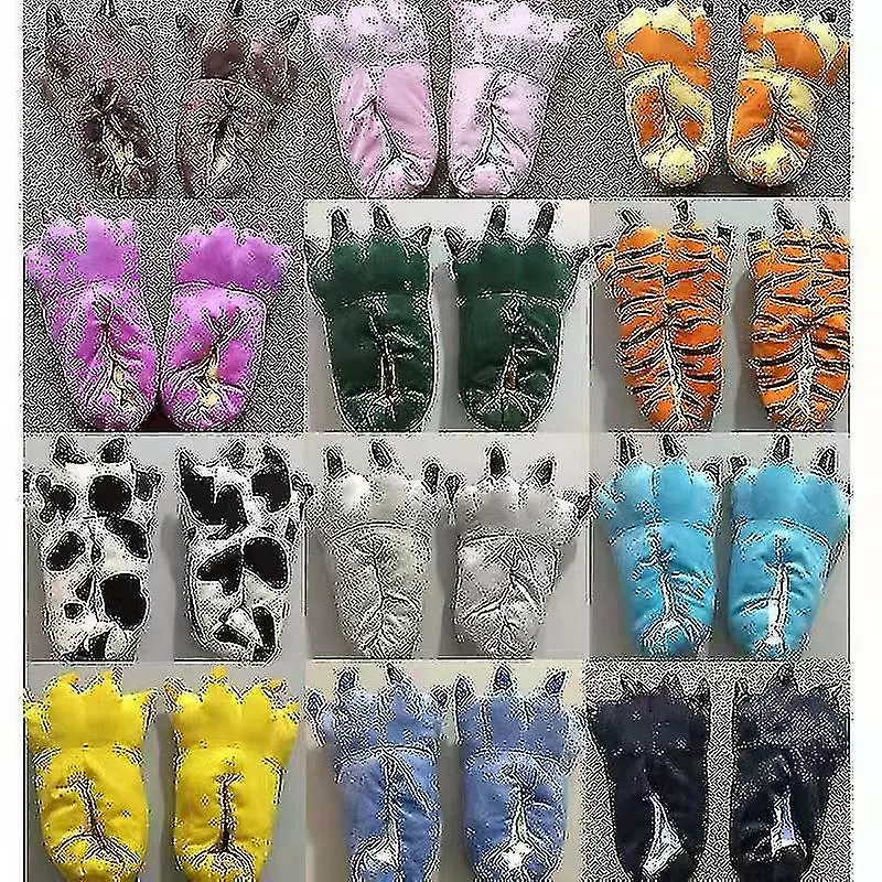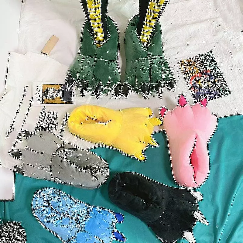 Funny animal paw slippers for adults, there are seven colors: green, black, blue, gray, pink, tiger pattern, cow color. Size: Small size 27-34, medium size 35-40, large size 41-45. The upper material is suede, foam sole, lightweight and convenient, the fabric is very soft, fluffy, comfortable and warm. Very suitable for cold climates. Put on your own dinosaur slippers to keep your feet warm and cute, plush fur and paws bring interesting realism: claw slippers add fun to your morning or afternoon, which is unmatched by ordinary boring slippers Yes, animal slippers are much better than wearing socks around the house. Wear them around the house or as a clothing accessory. Beautiful three-dimensional manicures make your cosplay look more realistic and add the finishing touch to the costume: by adding realistic details of stuffed animal shoes, you can take your Halloween, fancy dress party and role-playing games to another level. Choose your favorite look from black claw feet, fluffy pink tigers or green camouflage dinosaurs.