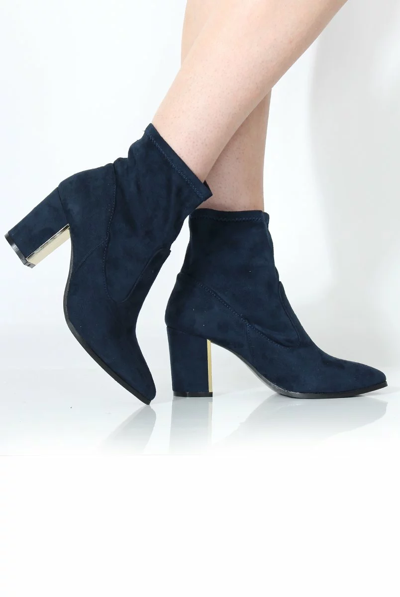 ALSO AVAILABLE IN BLACK, WINE & BEIGE Autumn is here and suede is a massive trend for this season. These Bay Navy Suede Ankle Boots are perfect for any occasion. Style these with a pair of jeans for a casual day out or step it up for are girls night on the town.