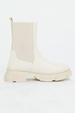 Our Alija Beige Faux Leather Ankle High Biker Boots are an autumn staple, prefect for your day looks. Chunky sole and faux leather with stretchy flyknit material to make these boots extra comfy!
