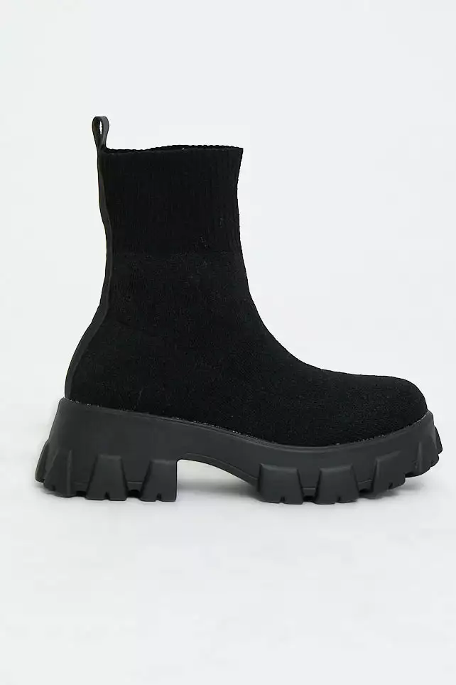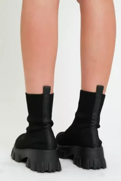 Our on trend Bana Black Flyknit Ankle High Chunky Sole Boots are this seasons must have, details include stretchy breathable flyknit material and chunky sole!