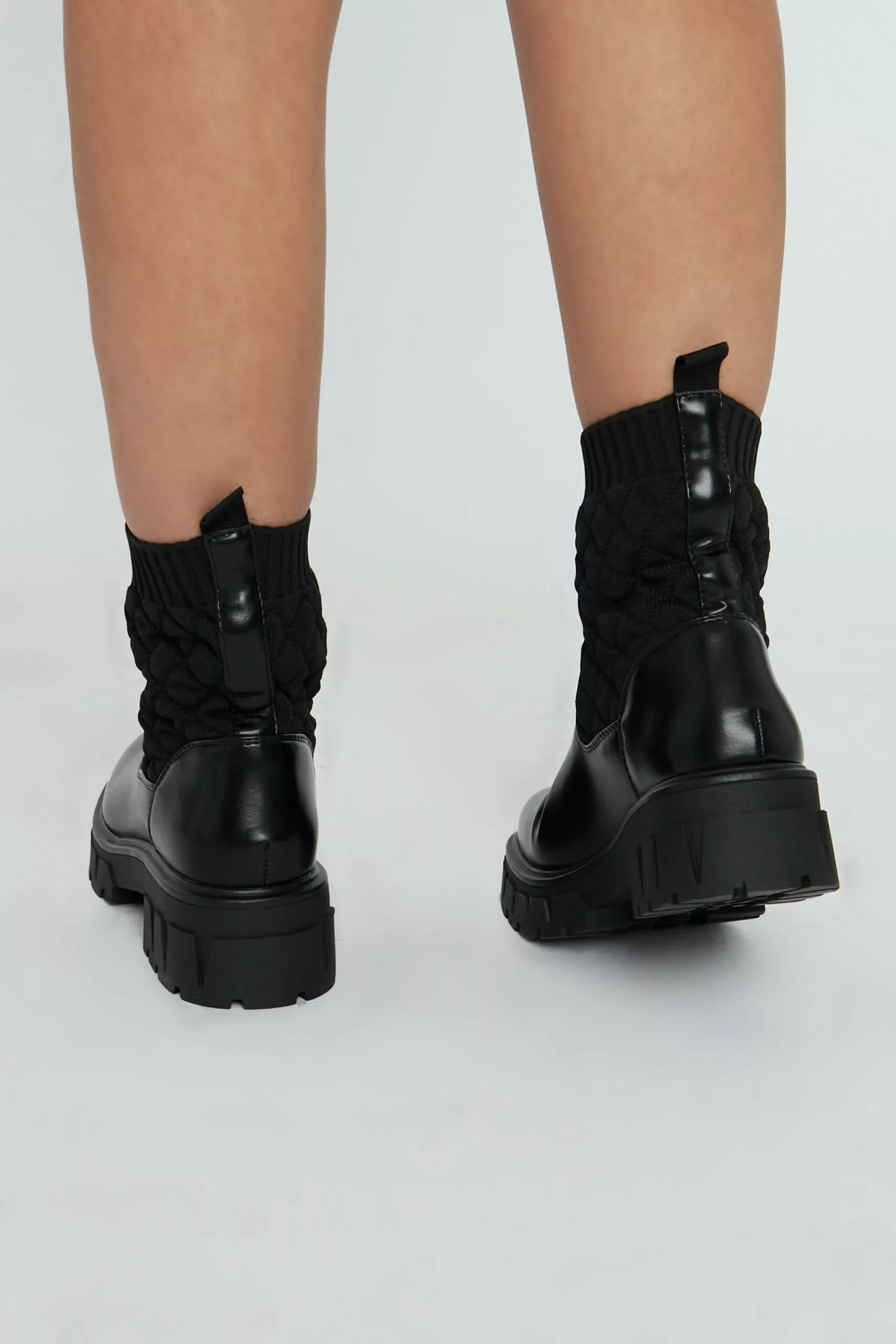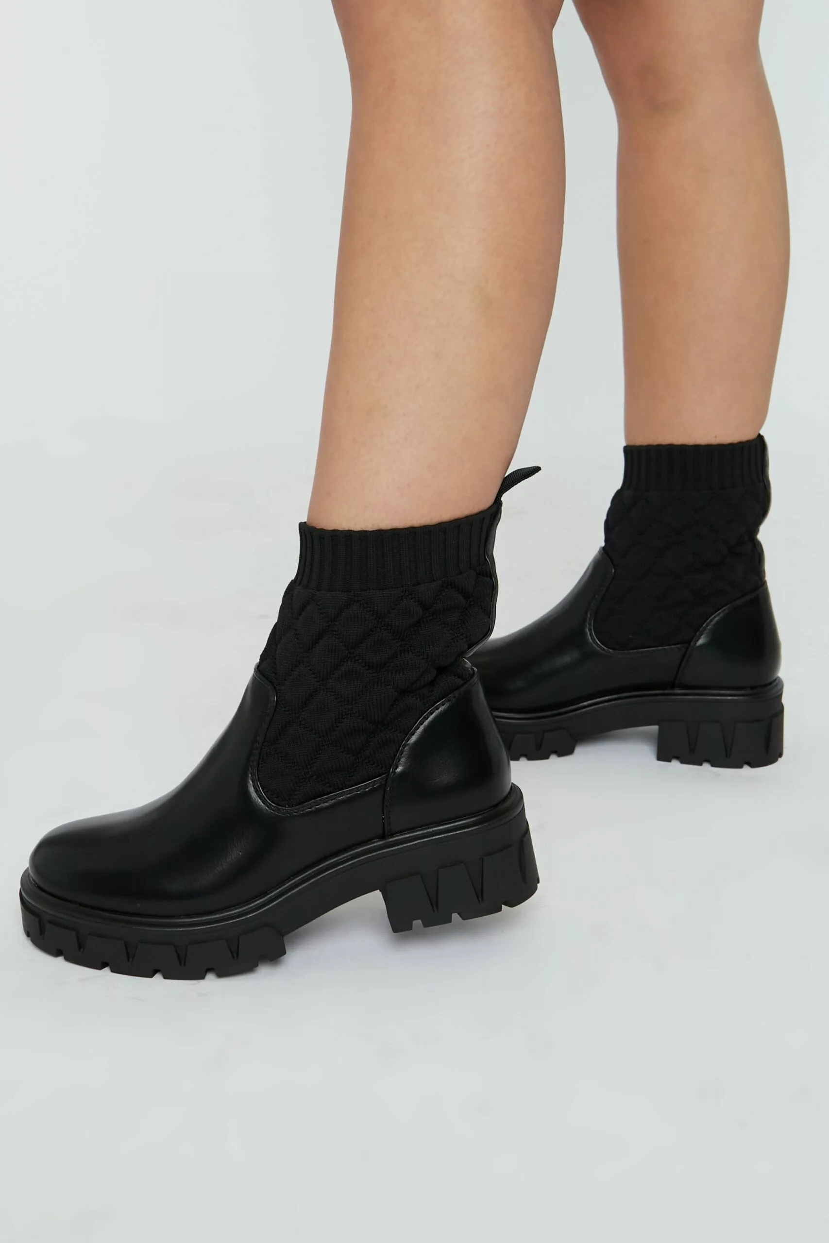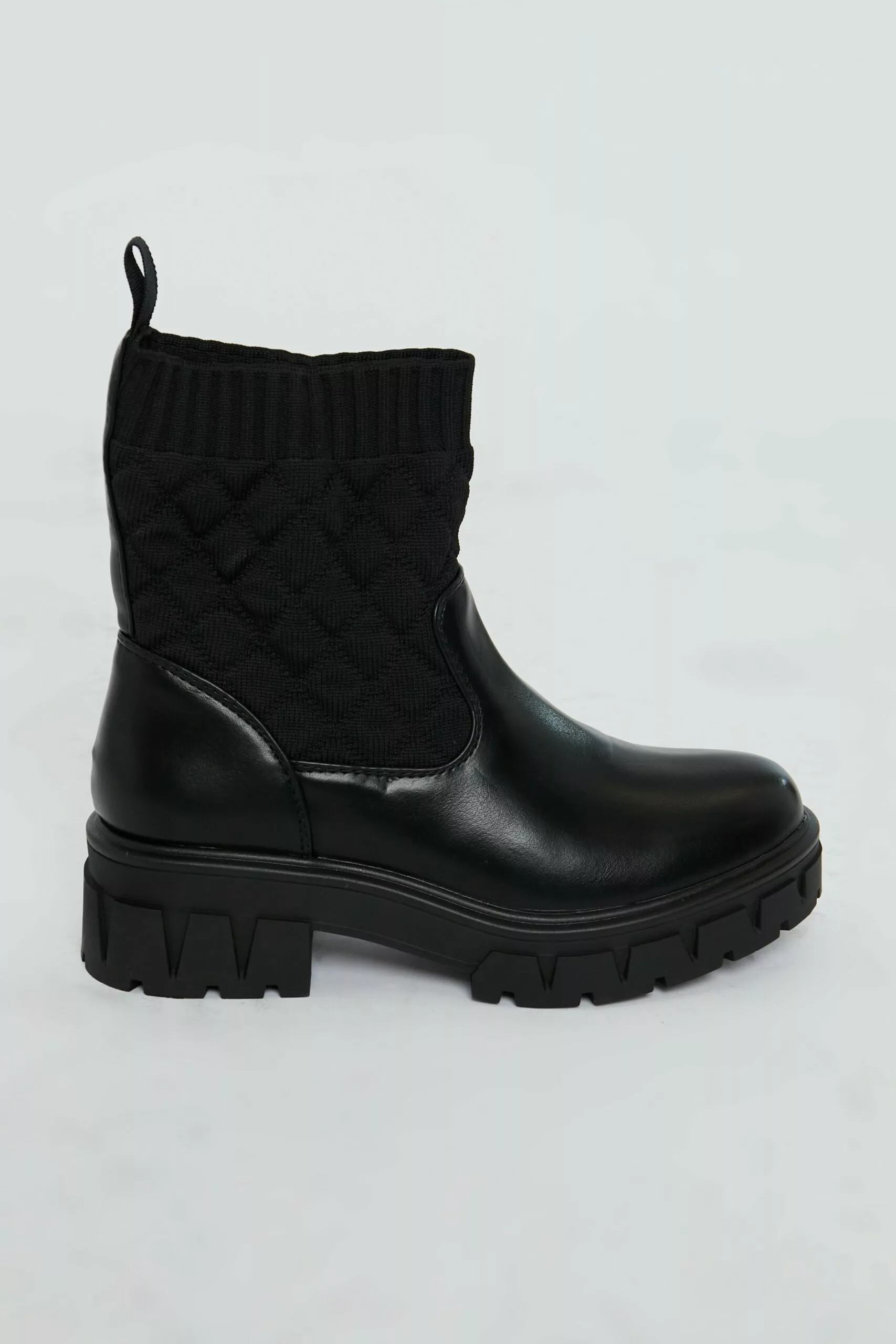 Our Alise Black Ankle High Quilted PU Faux Leather Boots! Details include ankle high boots with quilted fabric, these will vamp up any autumn winter you’ve got in mind.