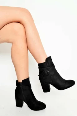 Strut your stuff in the Jaielle Black Faux Suede Buckle Detail Ankle Boots, complete with buckle detail, zip side and block heel. Pair with jeans and a cute blazer for smart-casj vibes.