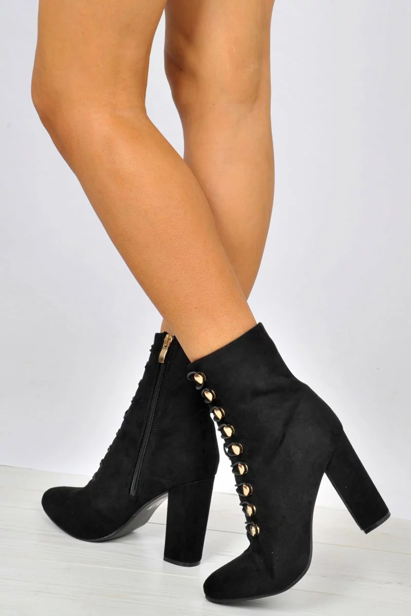 Channel your inner Sass Queen in our Fenna Black Faux Suede Looped Corset Detail Block Heel Boots with corset loop detailing, side zip fasten and block heel!
