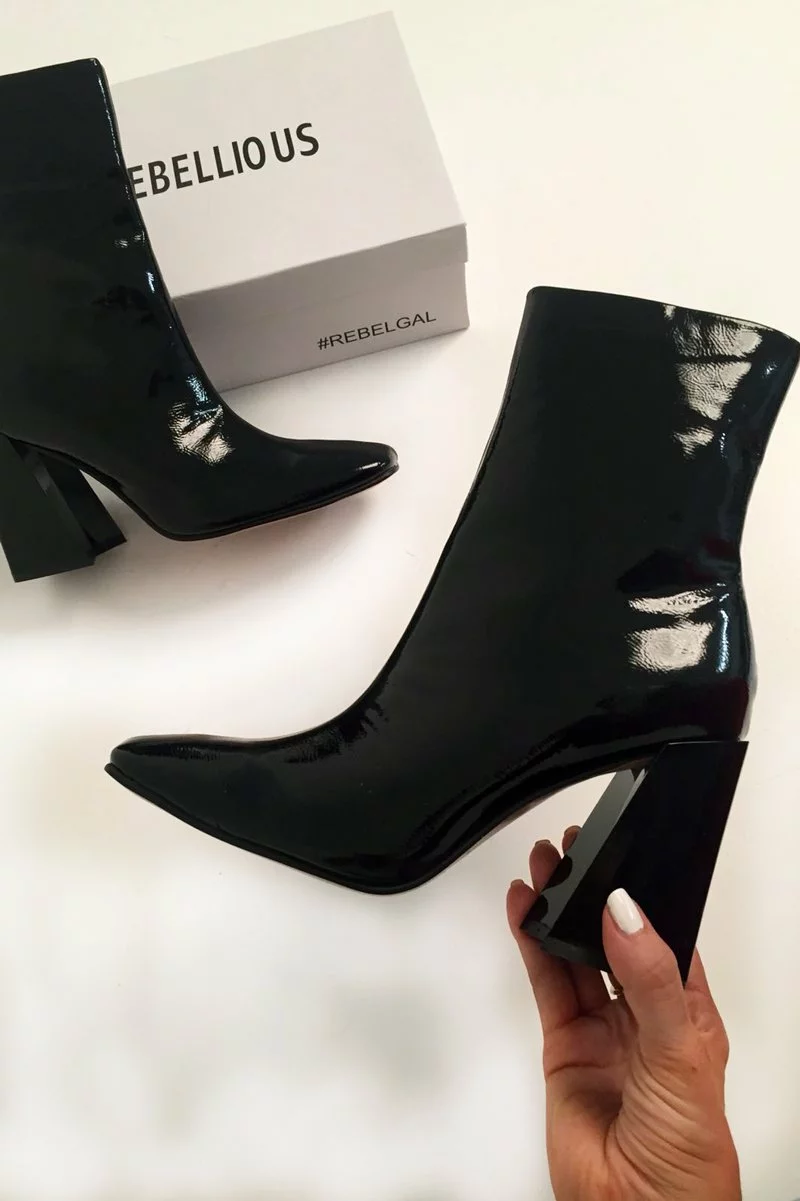 Channel your inner style goddess in the Aariyana Black Patent Block Heel Ankle Boots, with patent style and chunky block heel. So Chic!