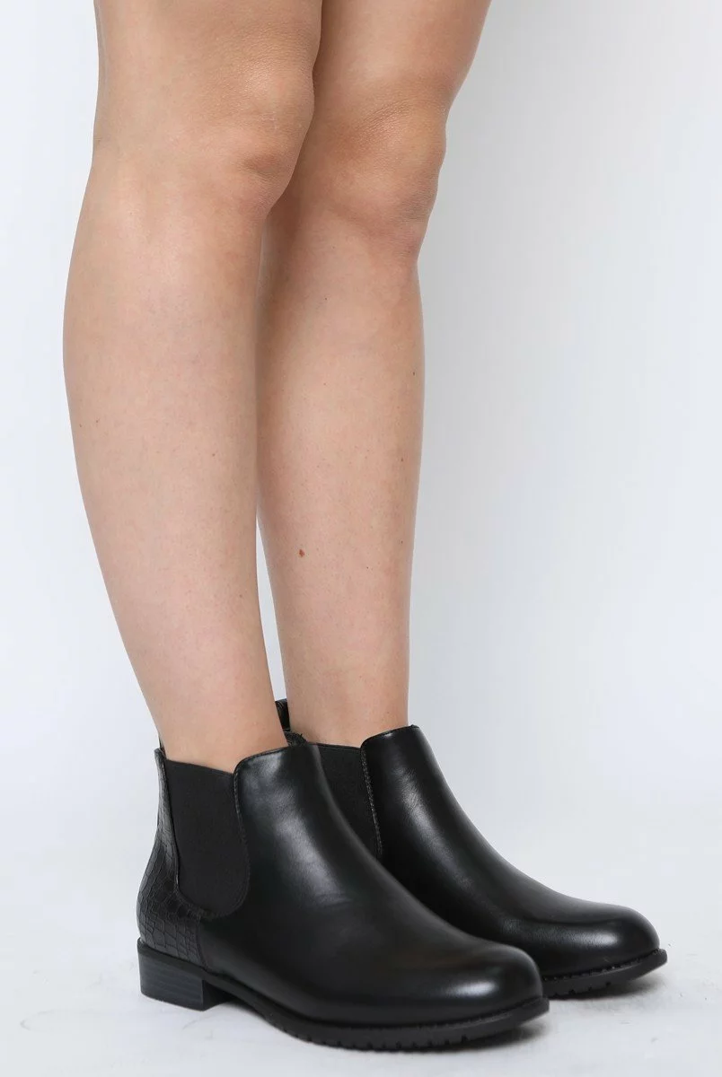These boots are made for walking, and you’ll be strutting your stuff all over town with these Hope Low Ankle Chelsea Boots. With a PU croc finish, these boots are perfect for creating a super chic everyday look. Team up with a pair of skinny jeans, white blouse and shoulder bag for a casual cool finish.