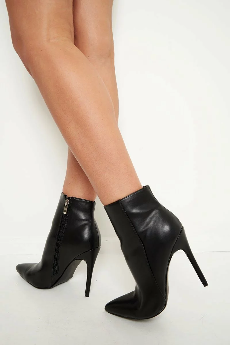 Strut your stuff in the Valetta Pu Heeled Ankle Boots, with stiletto heel and Pu fabric.