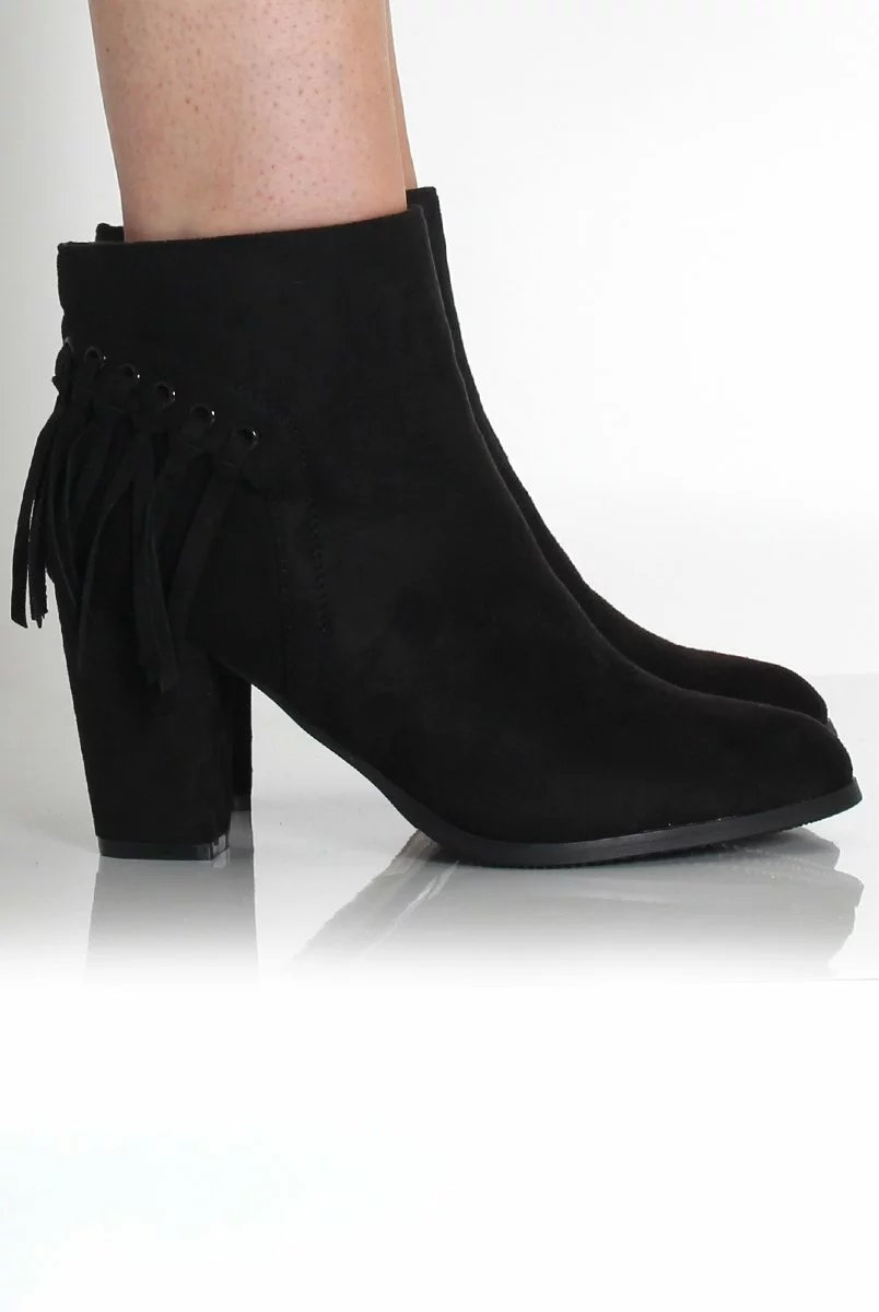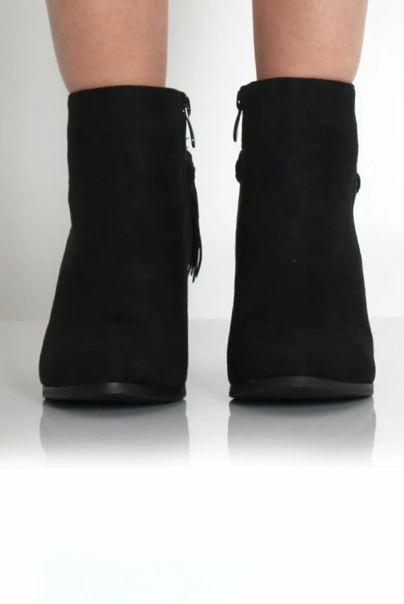Western just got more edgy. Step into Autumn in our brand new BRANDY Black Suede Tassel Ankle Boots are definitely business in the front and party in the back! BRANDY features a block heel and fringe detail. Also available in Tan Suede.