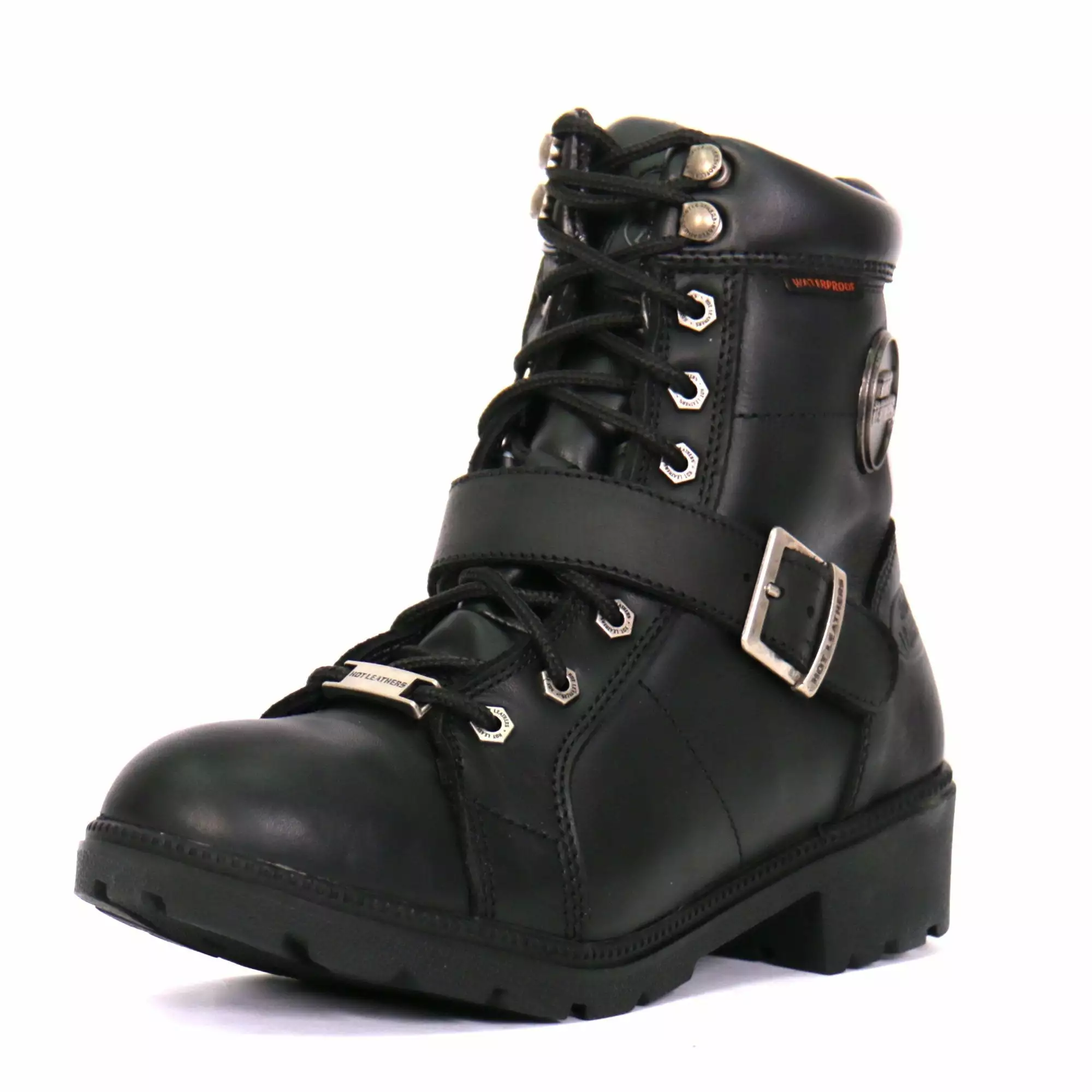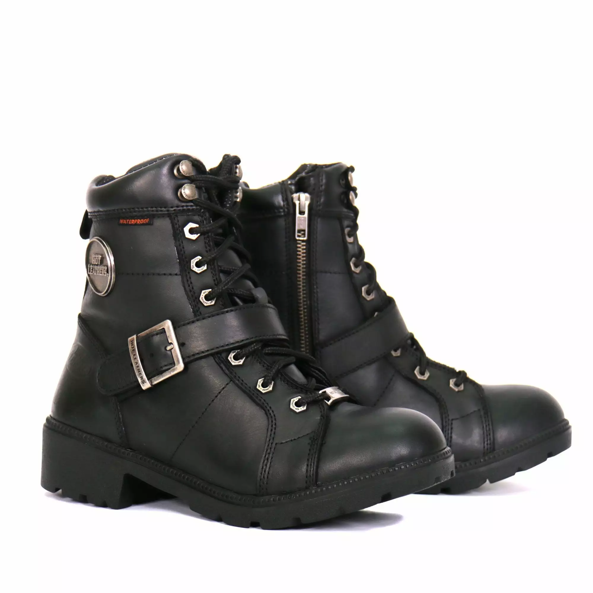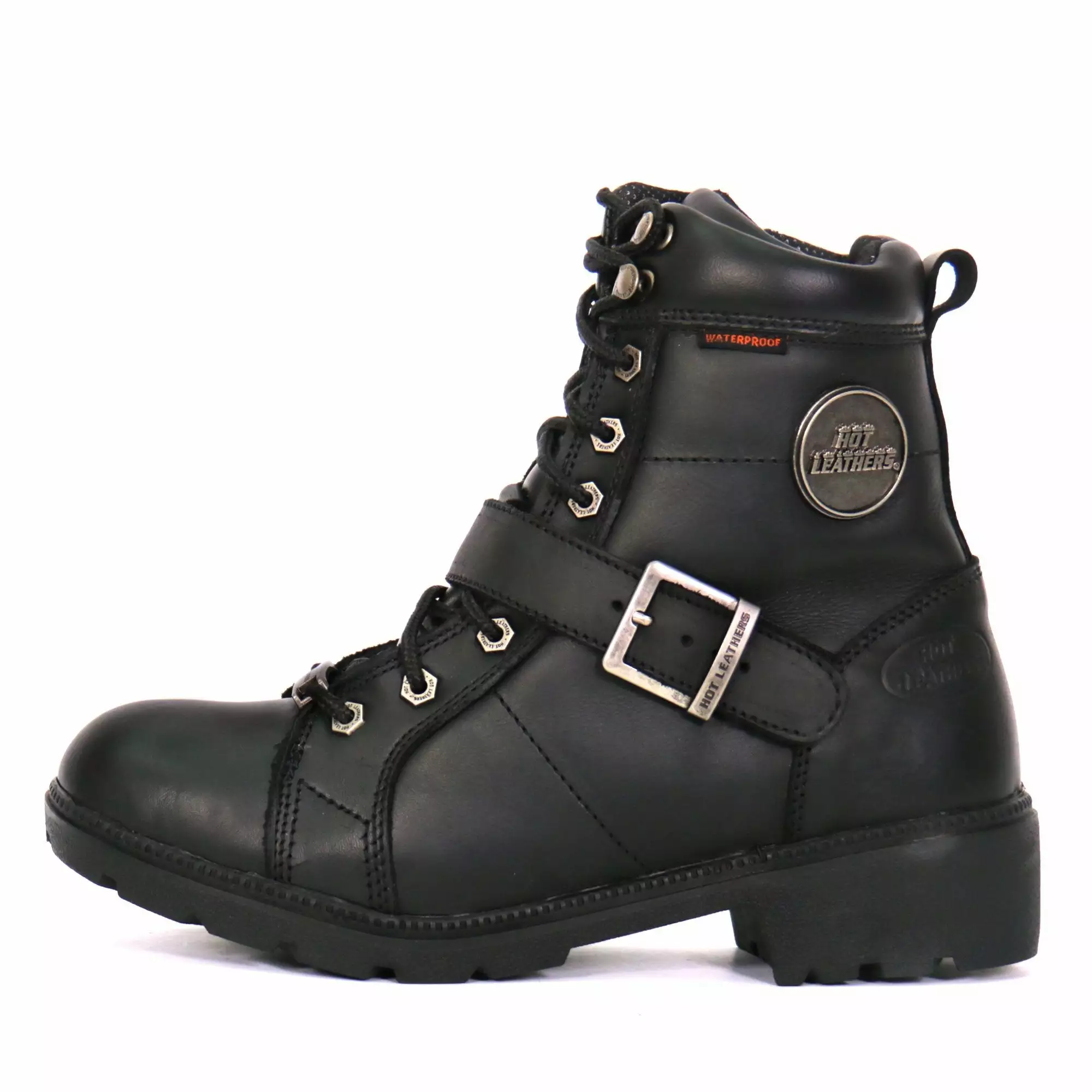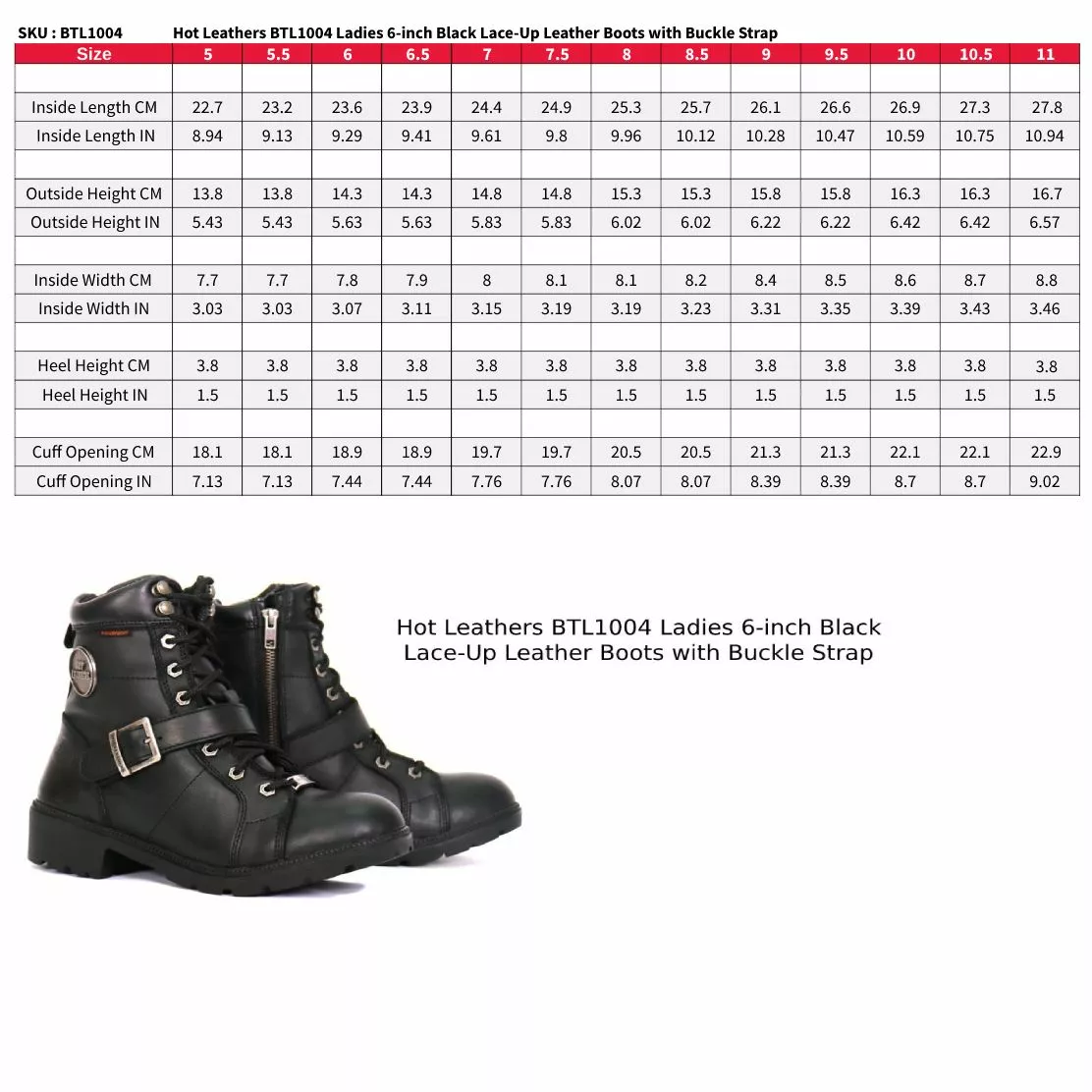 Hot Leathers BTL1004 Ladies 6-inch Black Lace-Up Leather Boots with Buckle Strap
