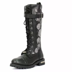Hot Leathers BTL1007 Ladies Black Knee High Wild Roses Leather Boots