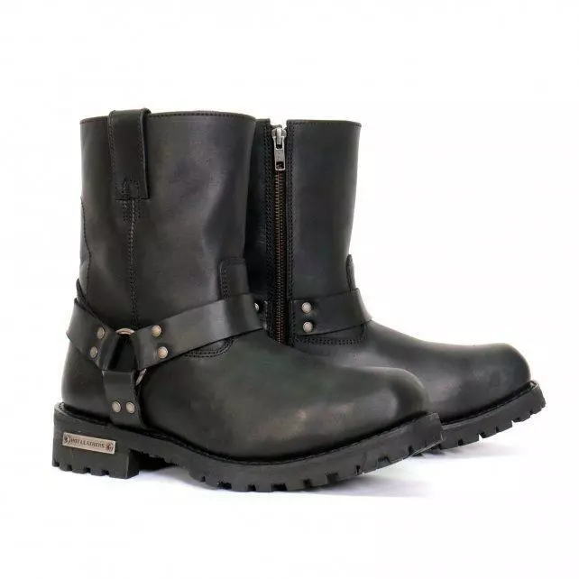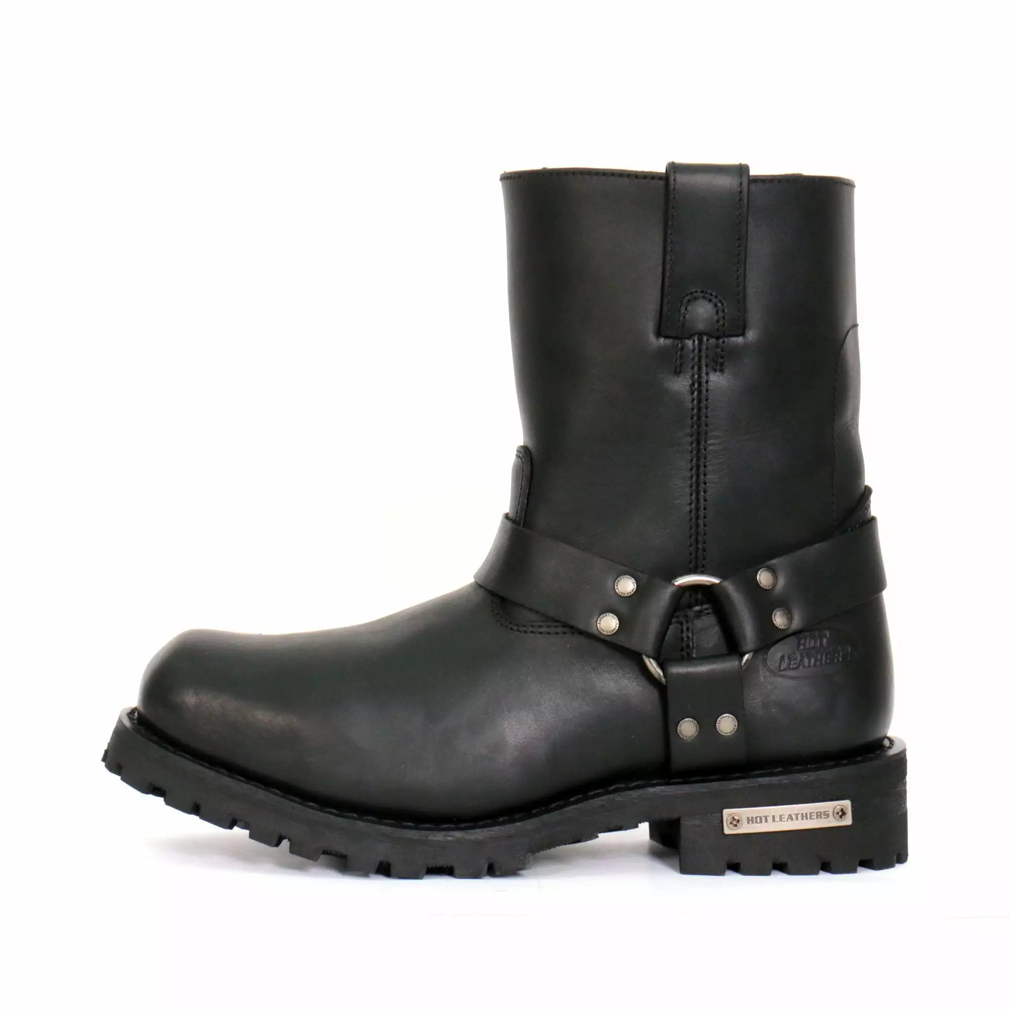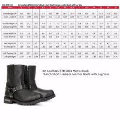 Hot Leathers BTM1004 Men’s Black 8-inch Short Harness Leather Boots with Lug Sole