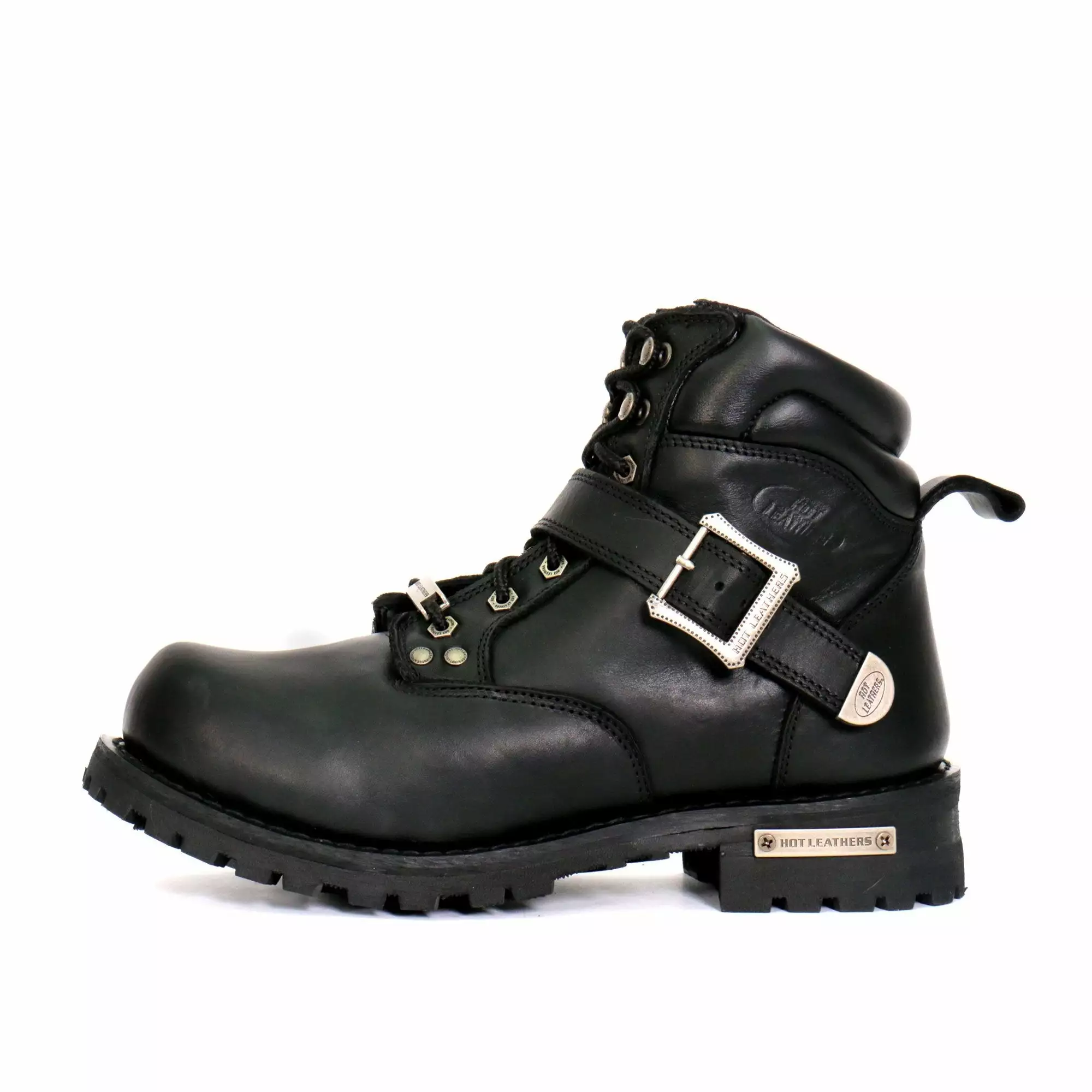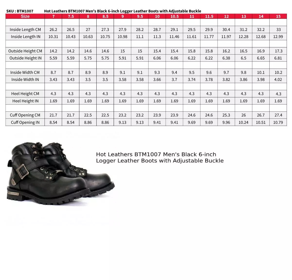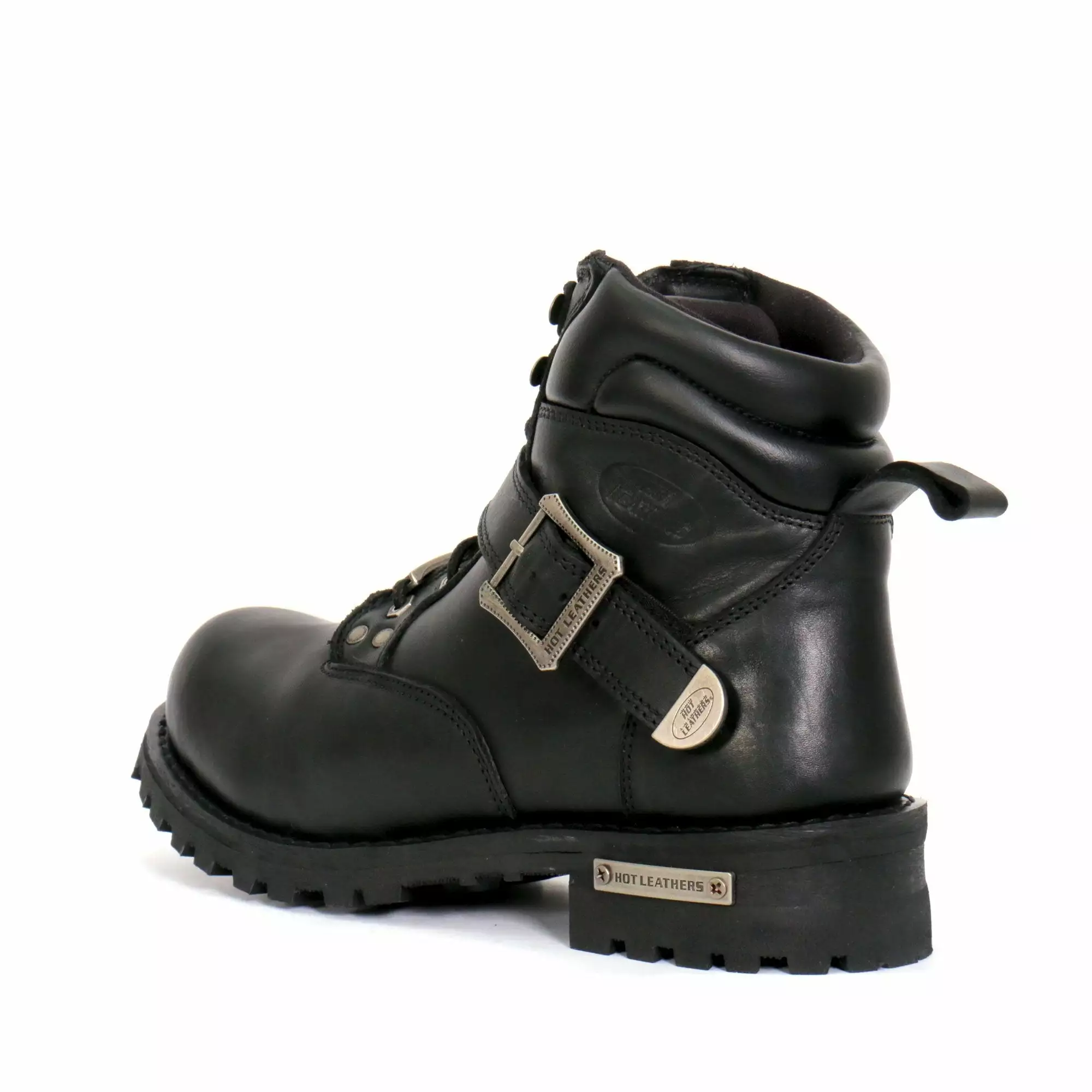 Hot Leathers BTM1007 Men’s Black 6-inch Logger Leather Boots with Adjustable Buckle