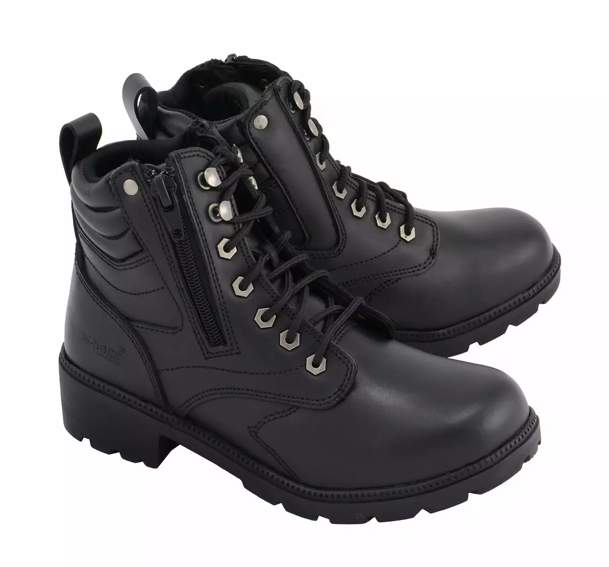 M Boss Apparel BOS49300 Ladies 7 inch Black Rally Style Leather Motorcycle Boots