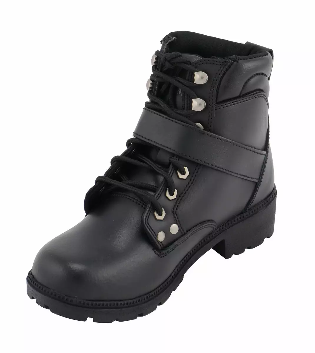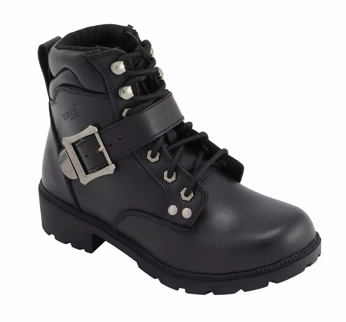 M Boss Apparel BOS49301 Ladies 7 Inch Black Road Captain Leather Motorcycle Boots