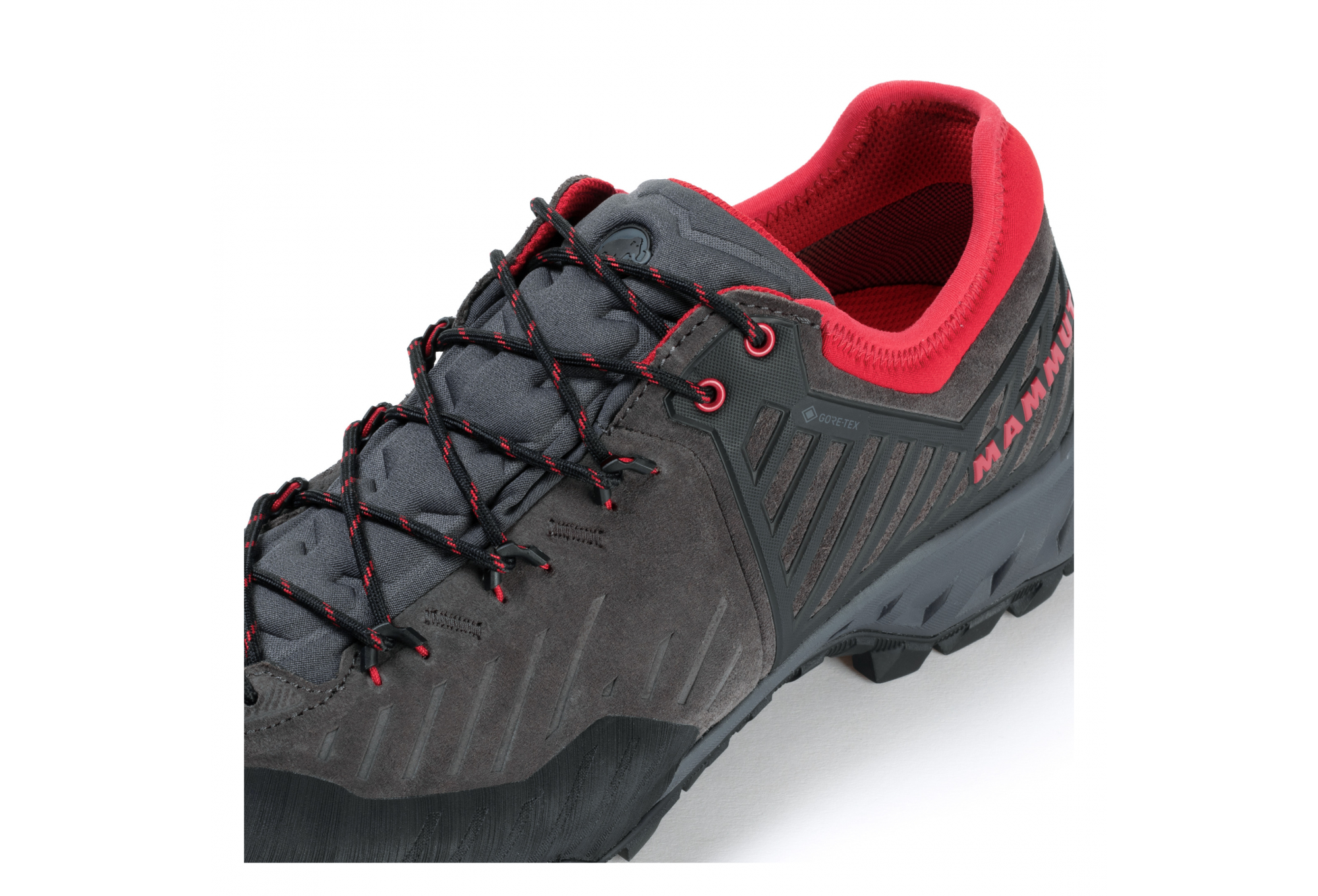 Alnasca II Low GTX® Men: extremely light low approach shoe. The Alnasca combines quality materials, a perfect fit and a unique design with the latest technologies. Base Fit technology for exceptional heel support and optimized lacing for better grip. The Michelin outsole provides excellent grip on your alpine adventures. Unmatched precision thanks to the reduced distance to the rock. Waterproofing and breathability thanks to the Gore-Tex® membrane. The low Alnasca offers ideal flexibility for via ferrata, hiking and climbing.