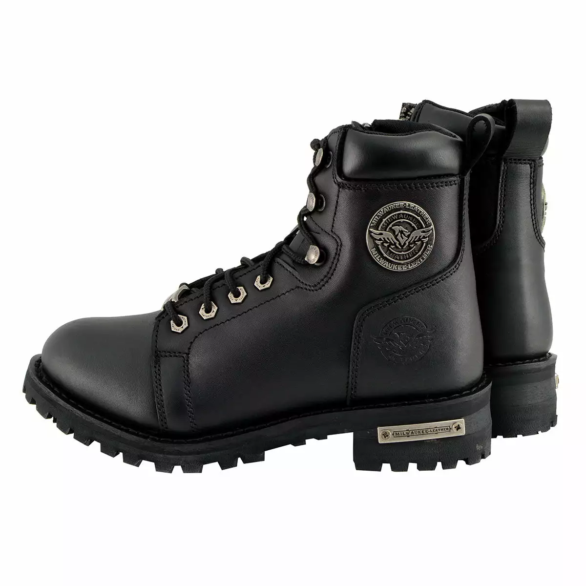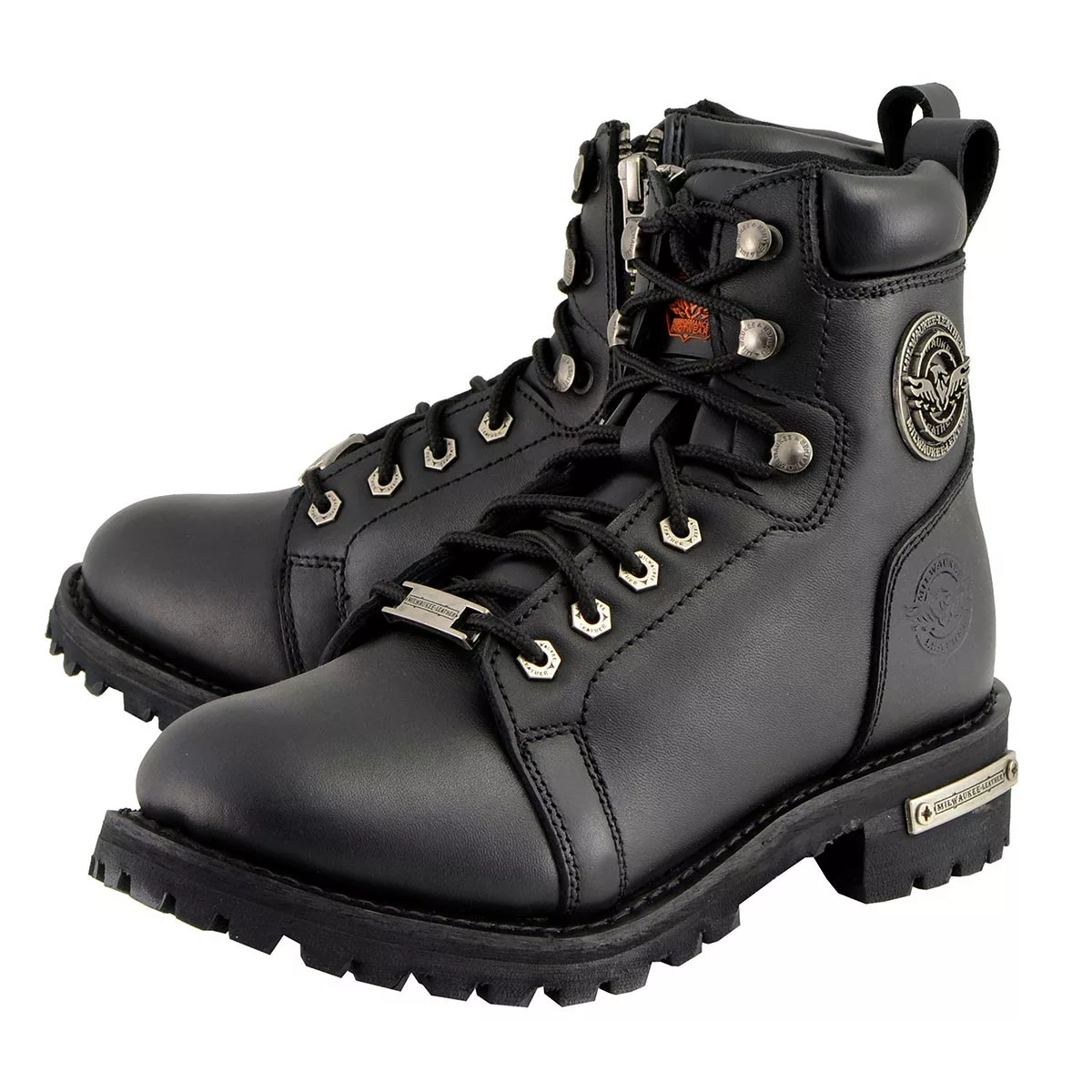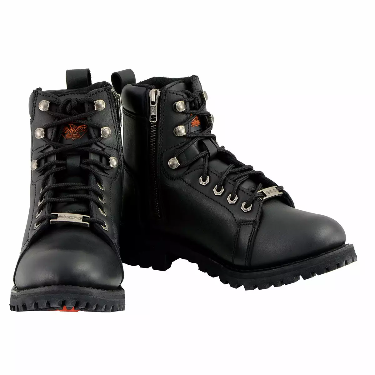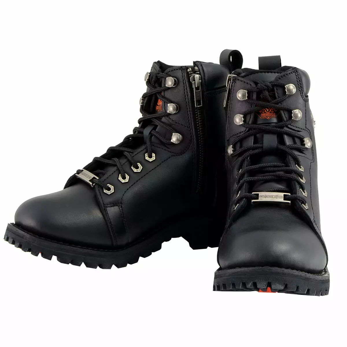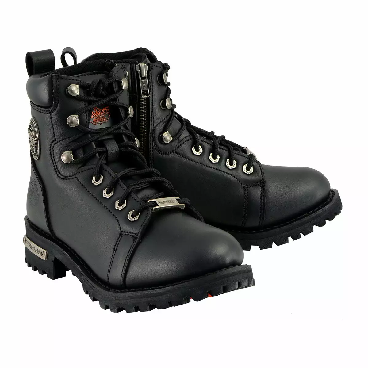 Milwaukee Leather MBL200 Women’s Black Lace-Up Boots with Side Zipper