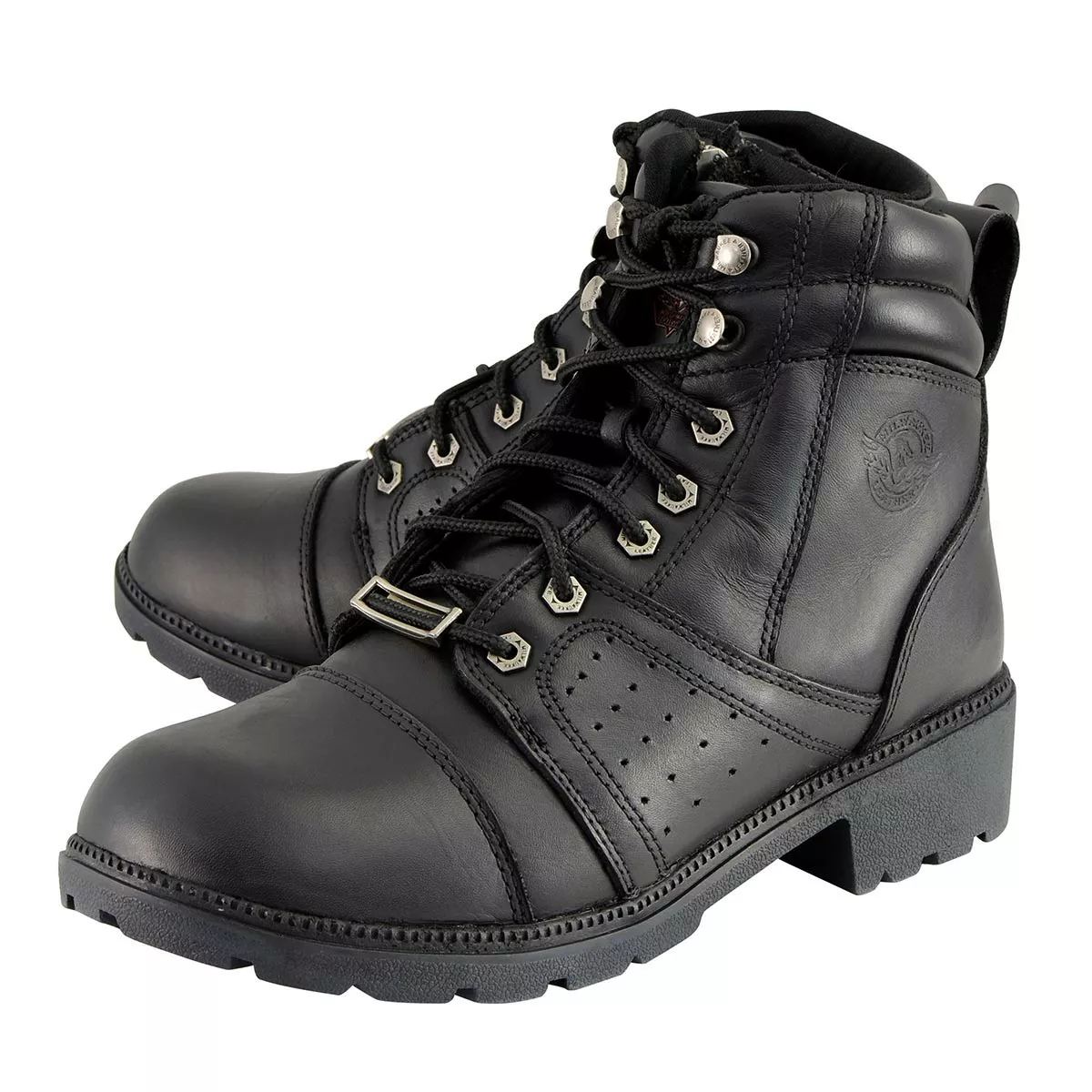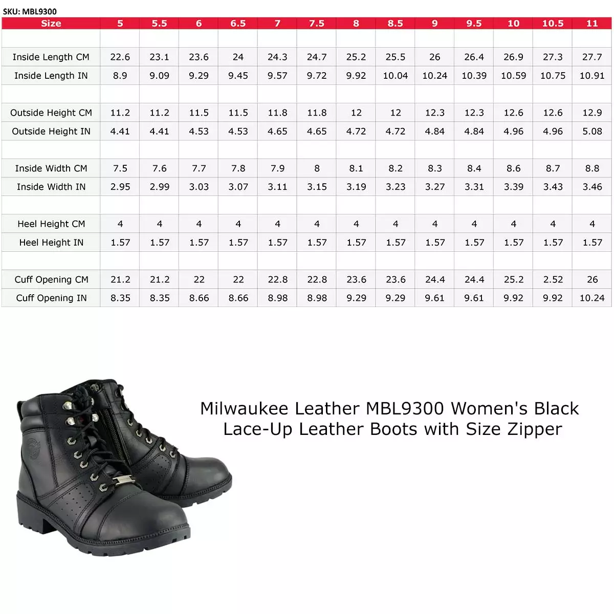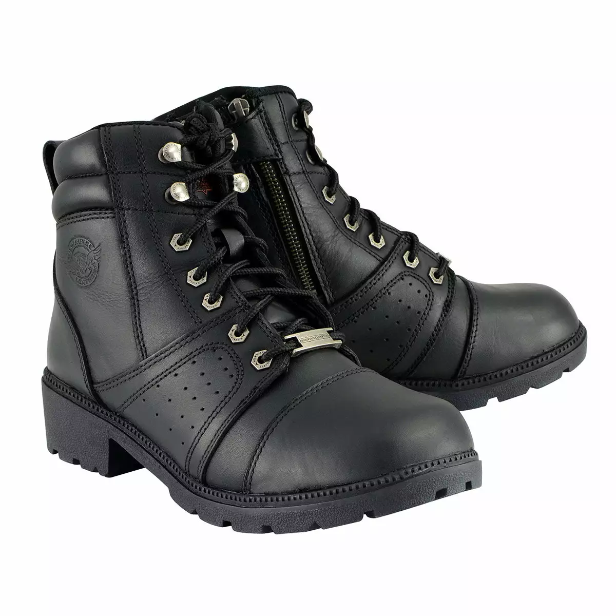 Milwaukee Leather MBL9300 Women’s Black Lace-Up Leather Boots with Size Zipper