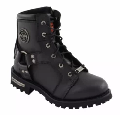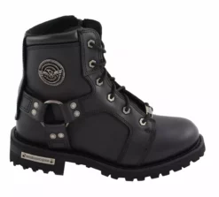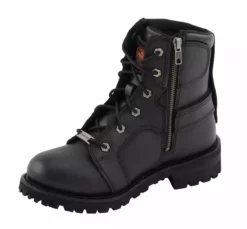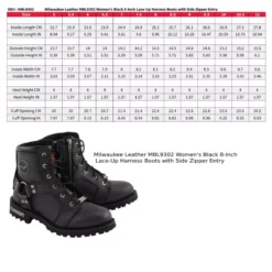 Milwaukee Leather MBL9302 Women’s Black 8-Inch Lace-Up Motorcycle Harness Boots with Side Zipper Entry