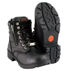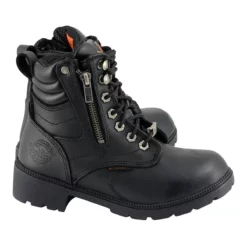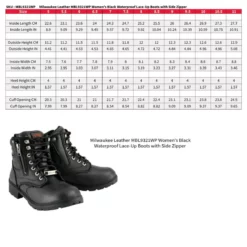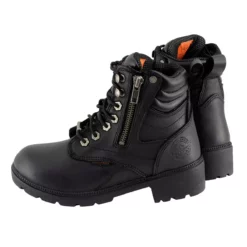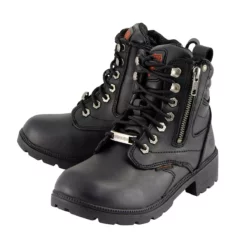 Milwaukee Leather MBL9321WP Women’s Black Waterproof Lace-Up Boots with Side Zipper