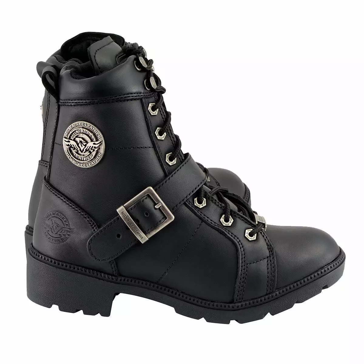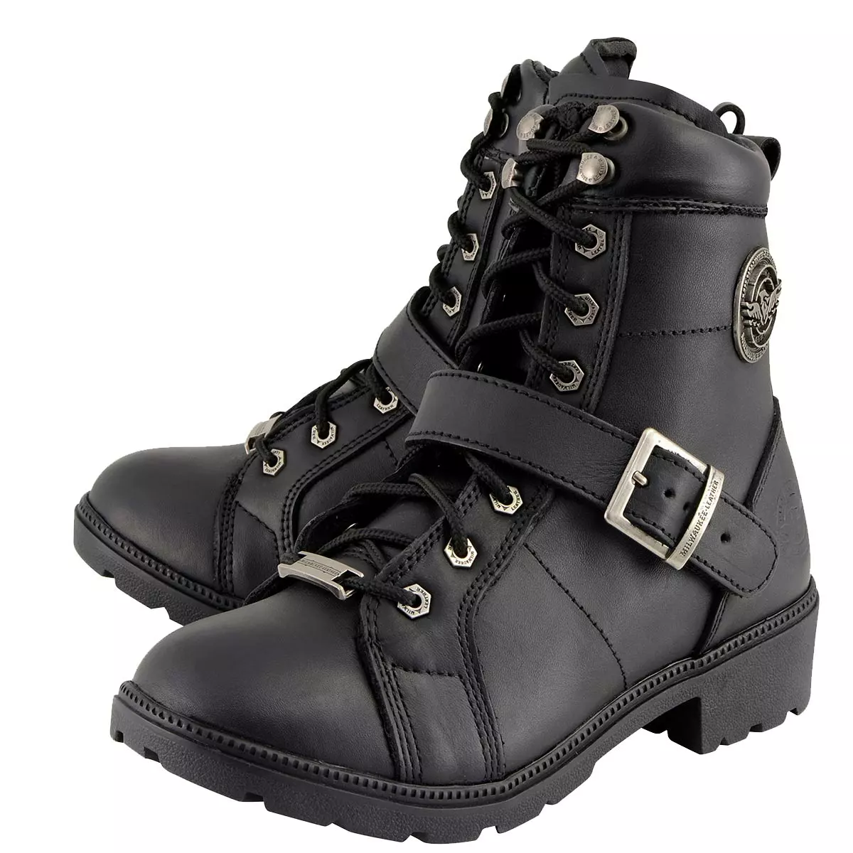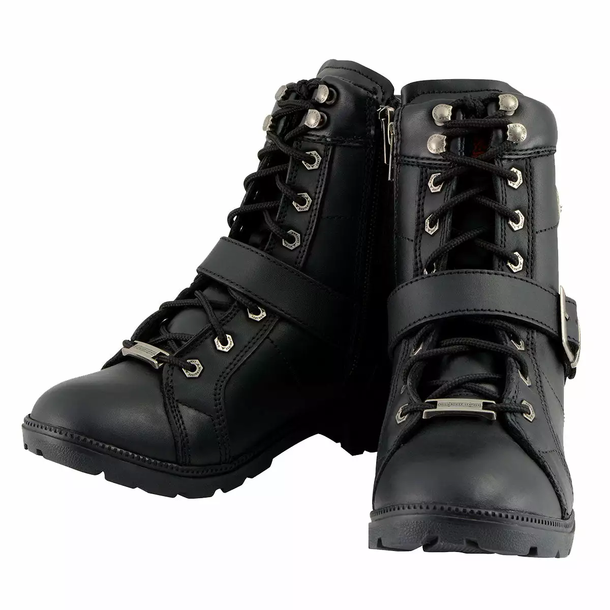 Milwaukee Leather MBL9325W Women’s Wide Width Lace-Up Black Leather Boots with Zippers
