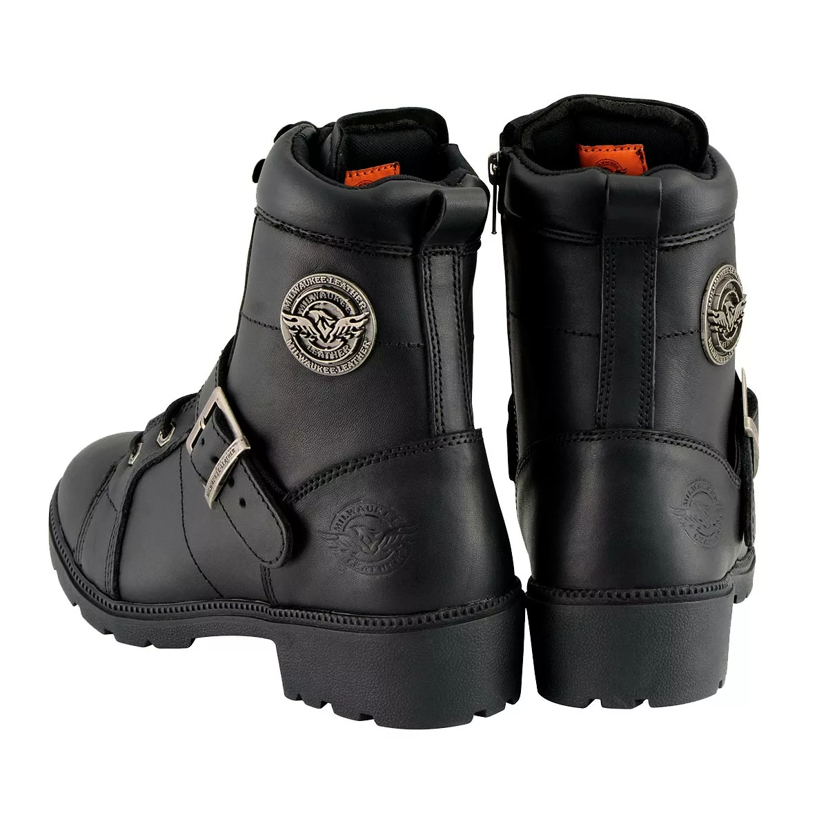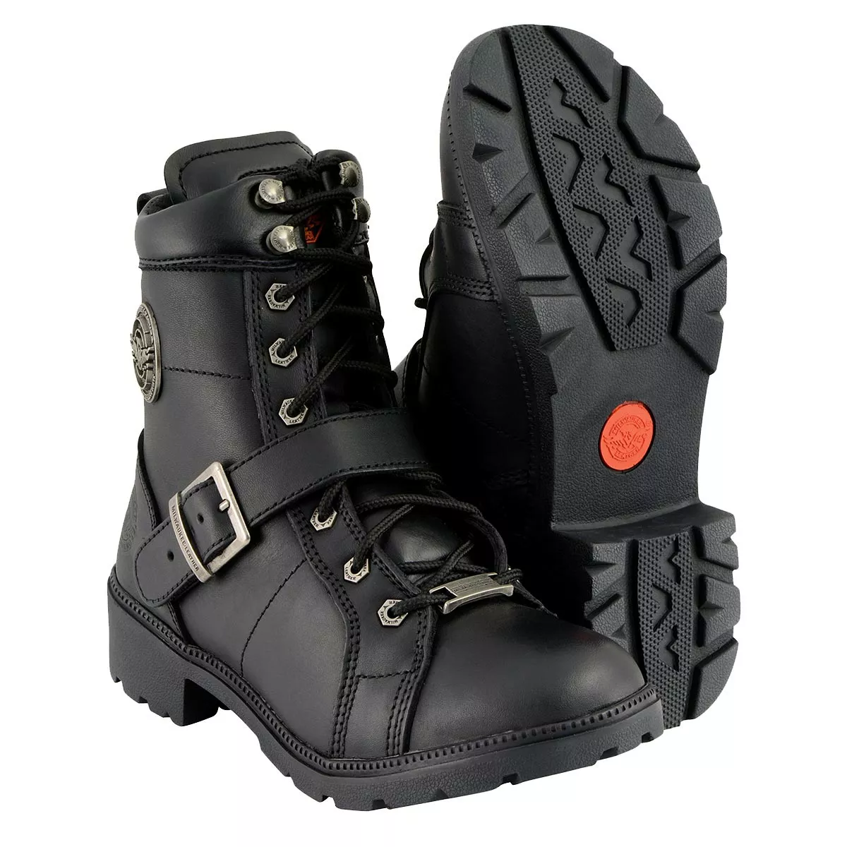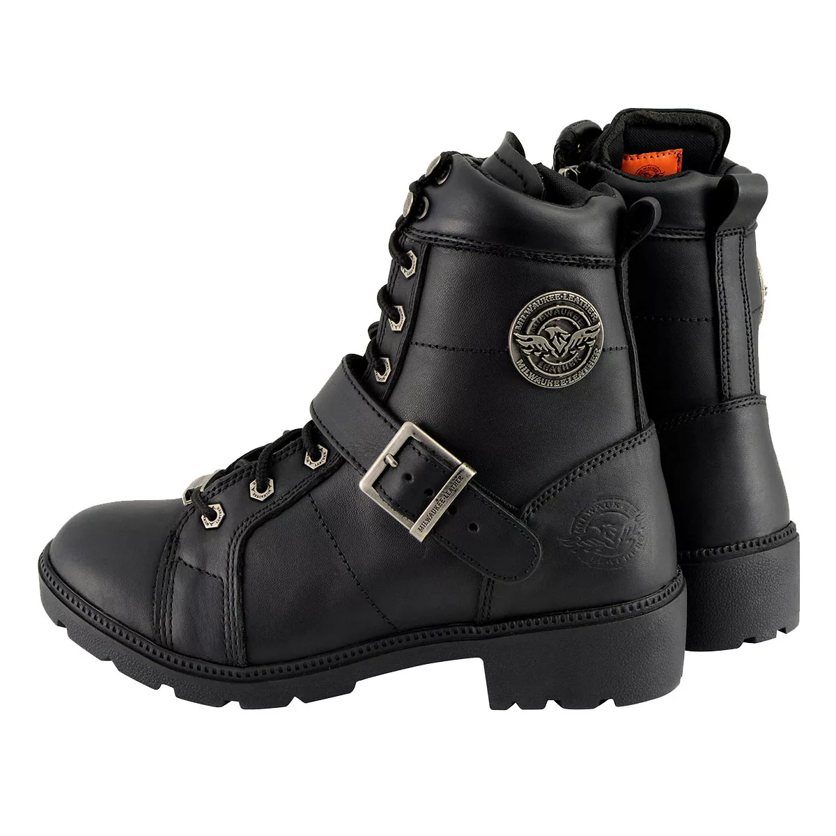 Milwaukee Leather MBL9325W Women’s Wide Width Lace-Up Black Leather Boots with Zippers