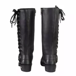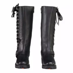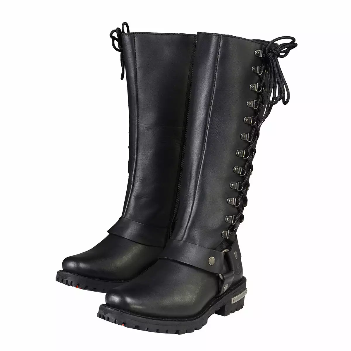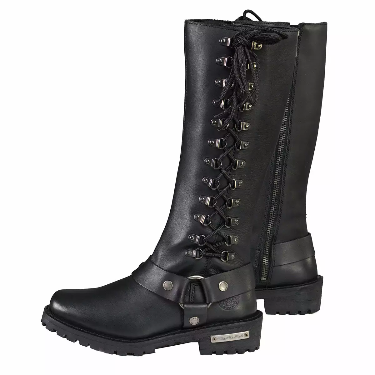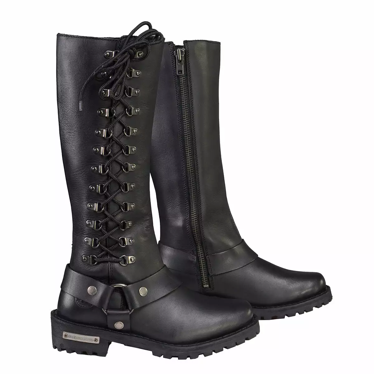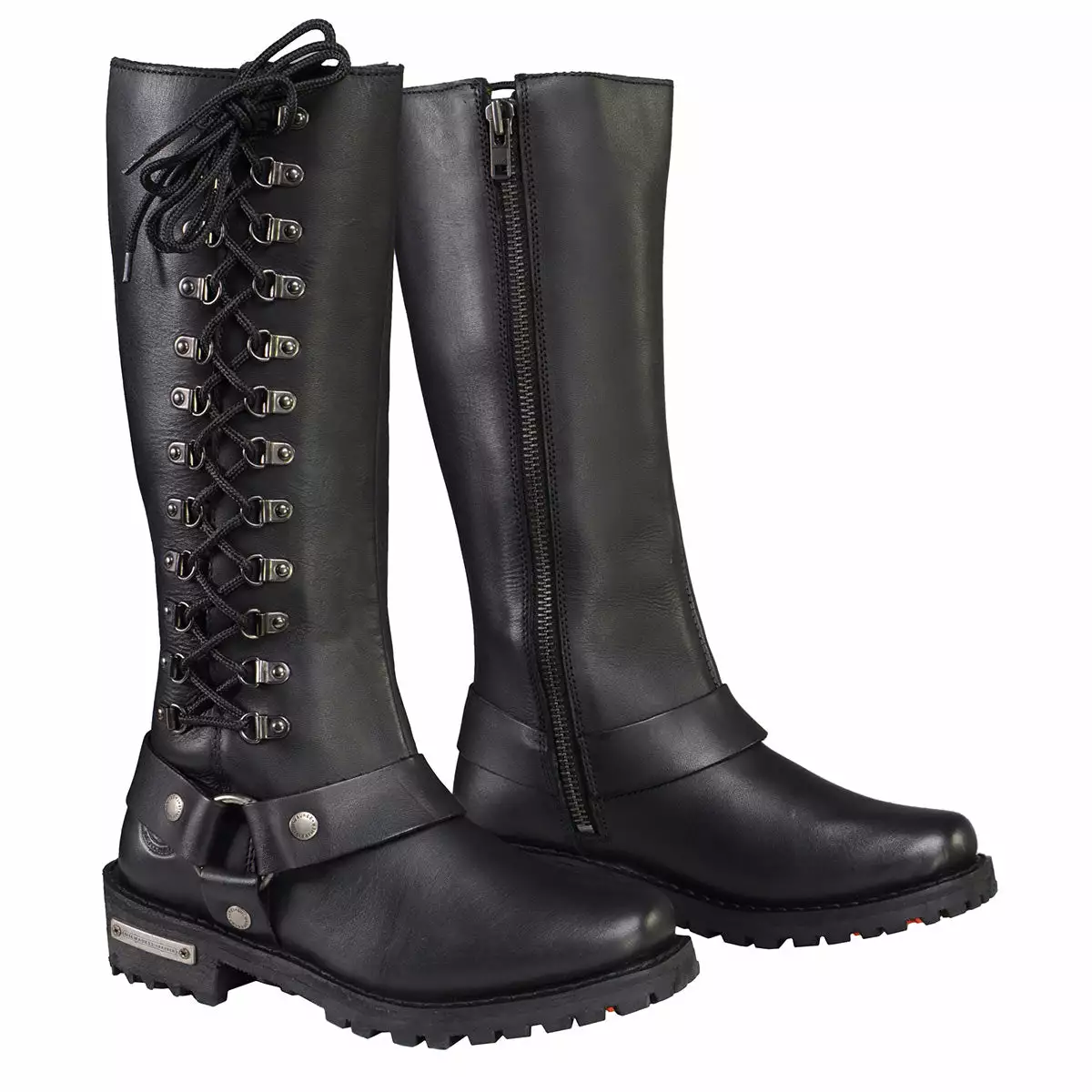 Milwaukee Leather MBL9365 Ladies Black 14-Inch Classic Harness Square Toe Leather Tall Boots with Lacing Detail