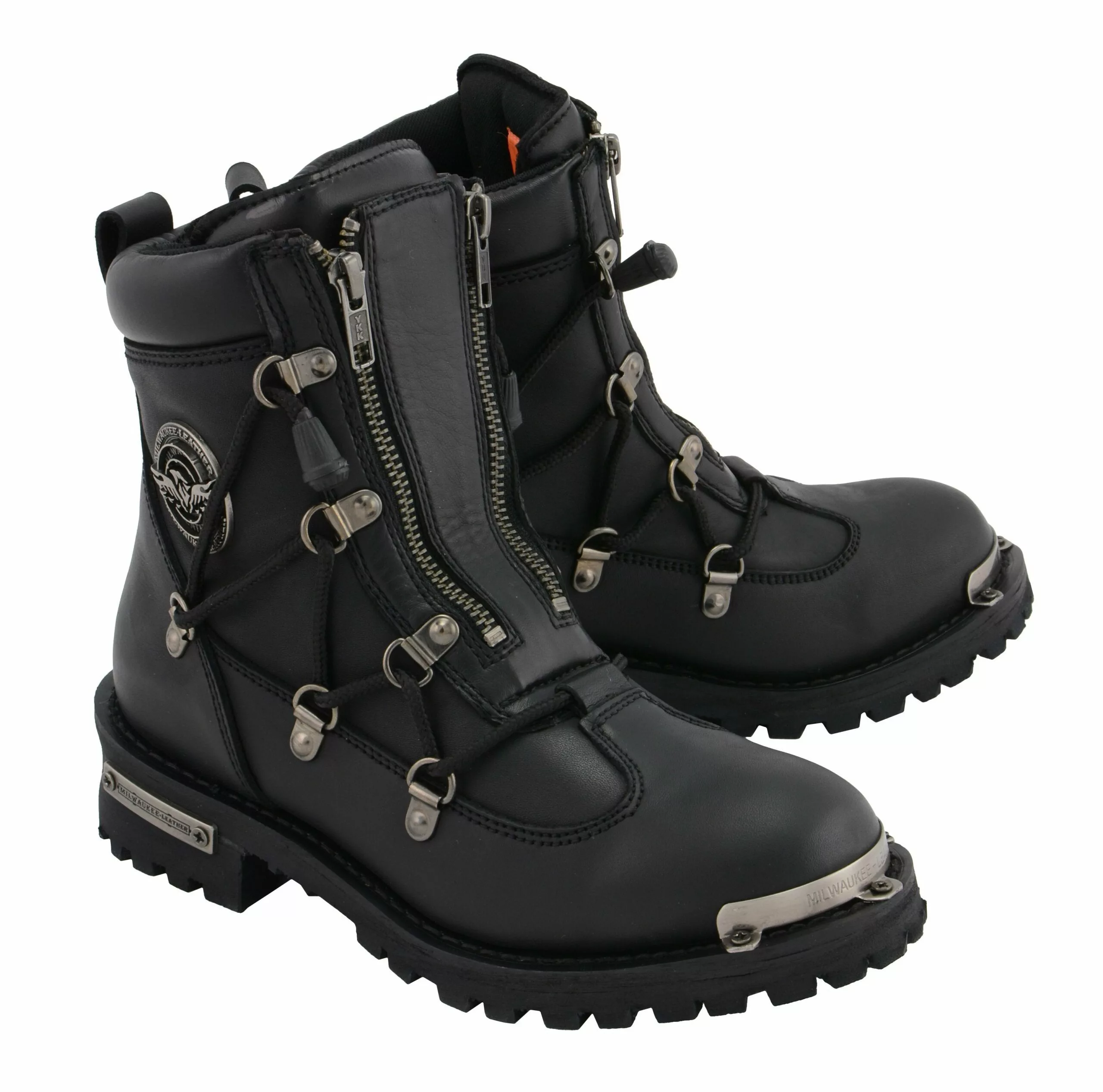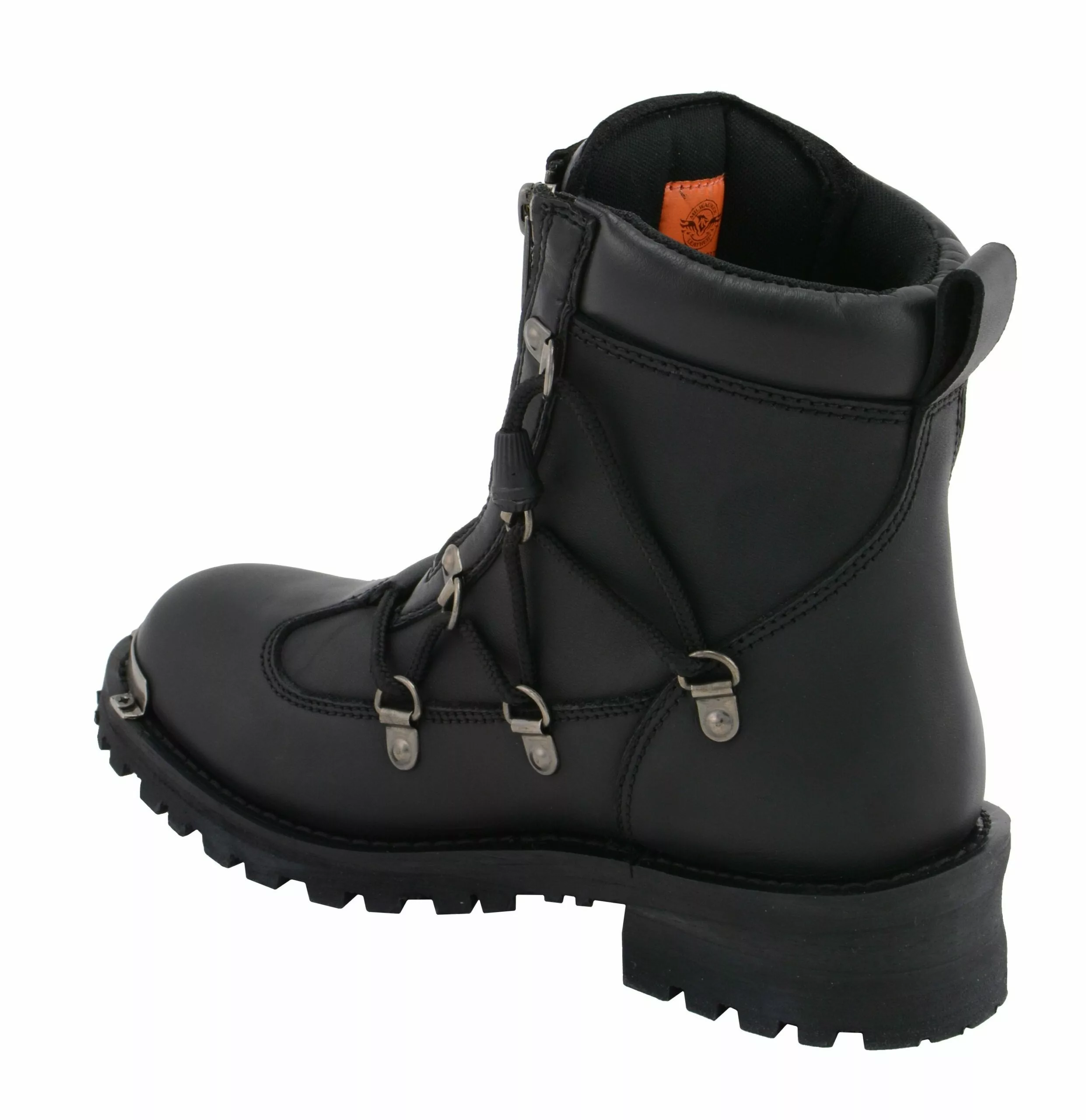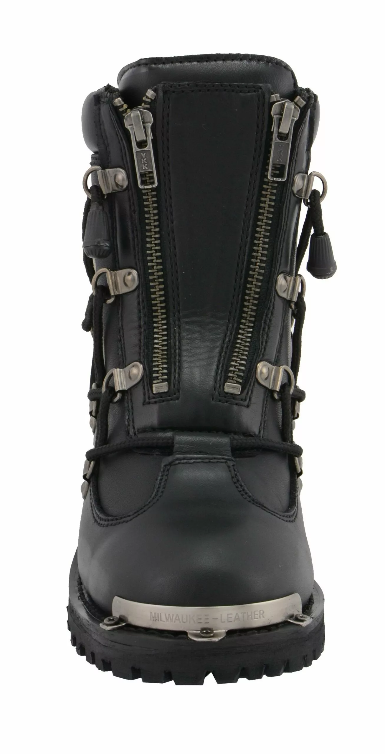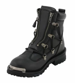 Milwaukee Leather MBL9375 Women’s Black Leather Diamond 6-Inch Twin Zipper Lock Riding Boots