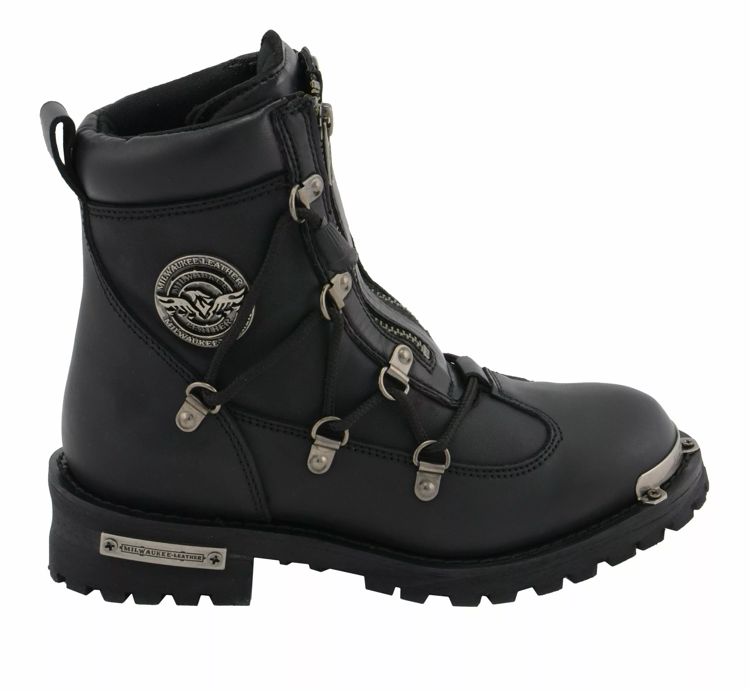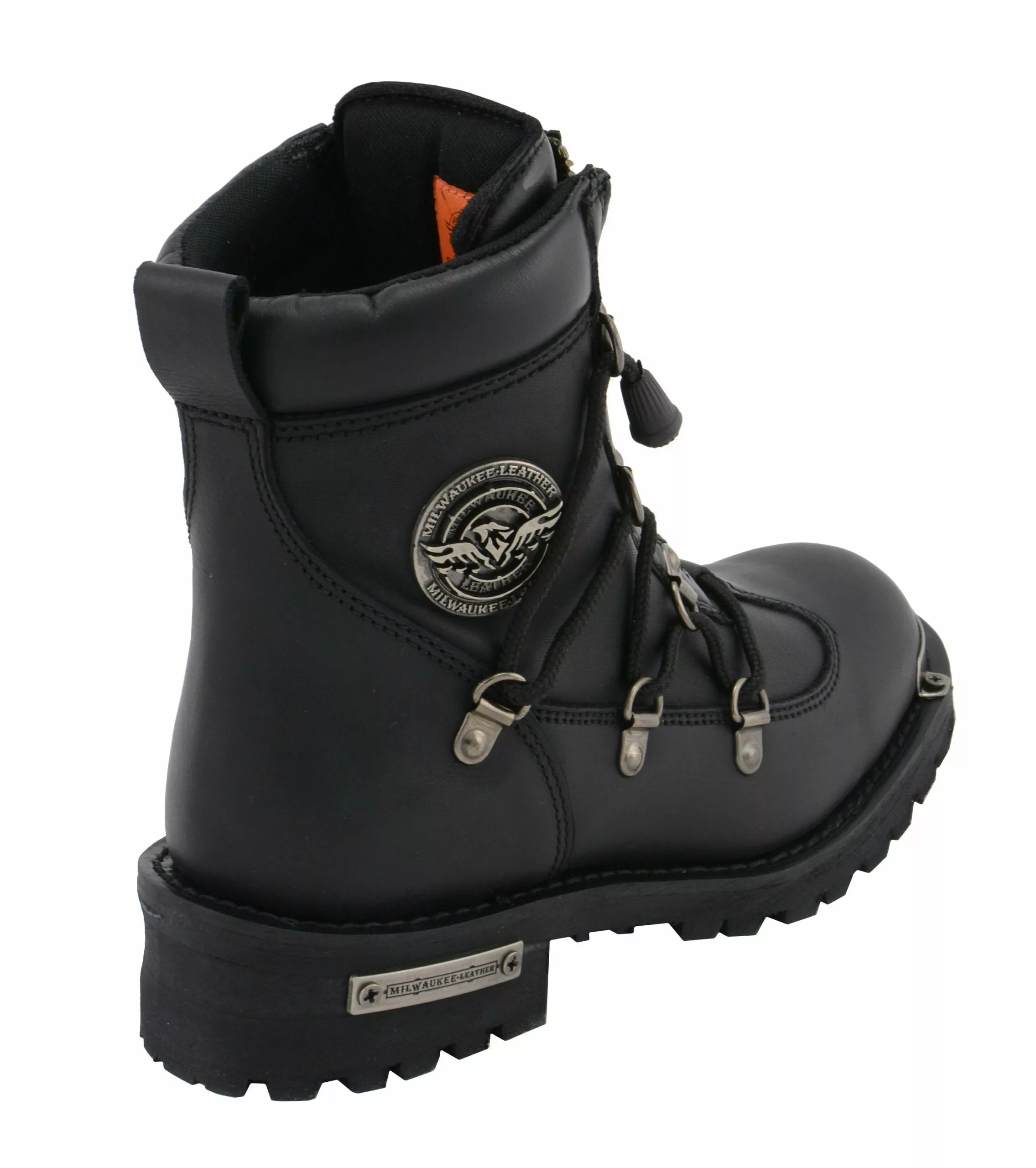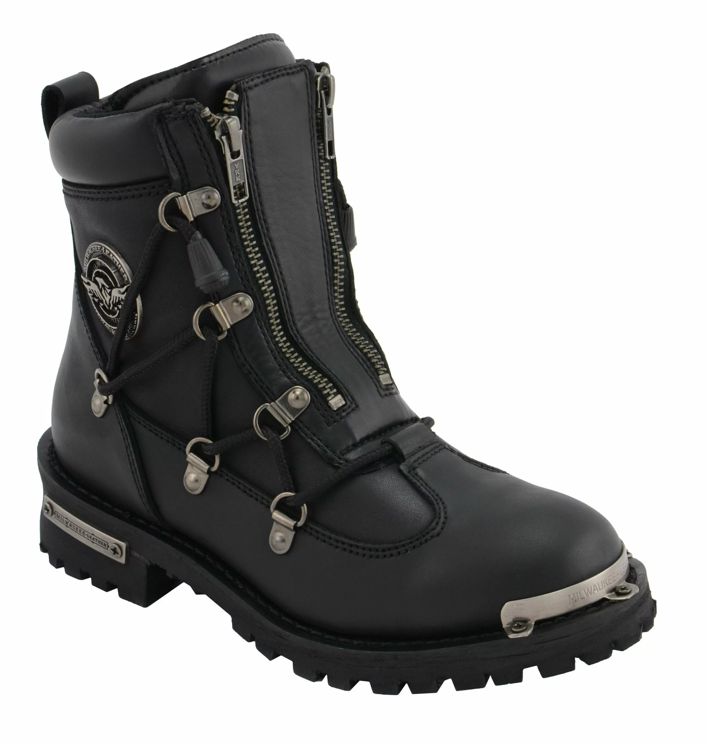 Milwaukee Leather MBL9375 Women’s Black Leather Diamond 6-Inch Twin Zipper Lock Riding Boots