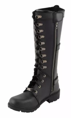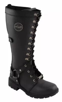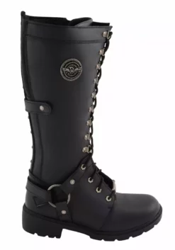 Milwaukee Leather MBL9380 Women’s Black ‘Jane’ 15-inch Leather Combat Style Harness Boots