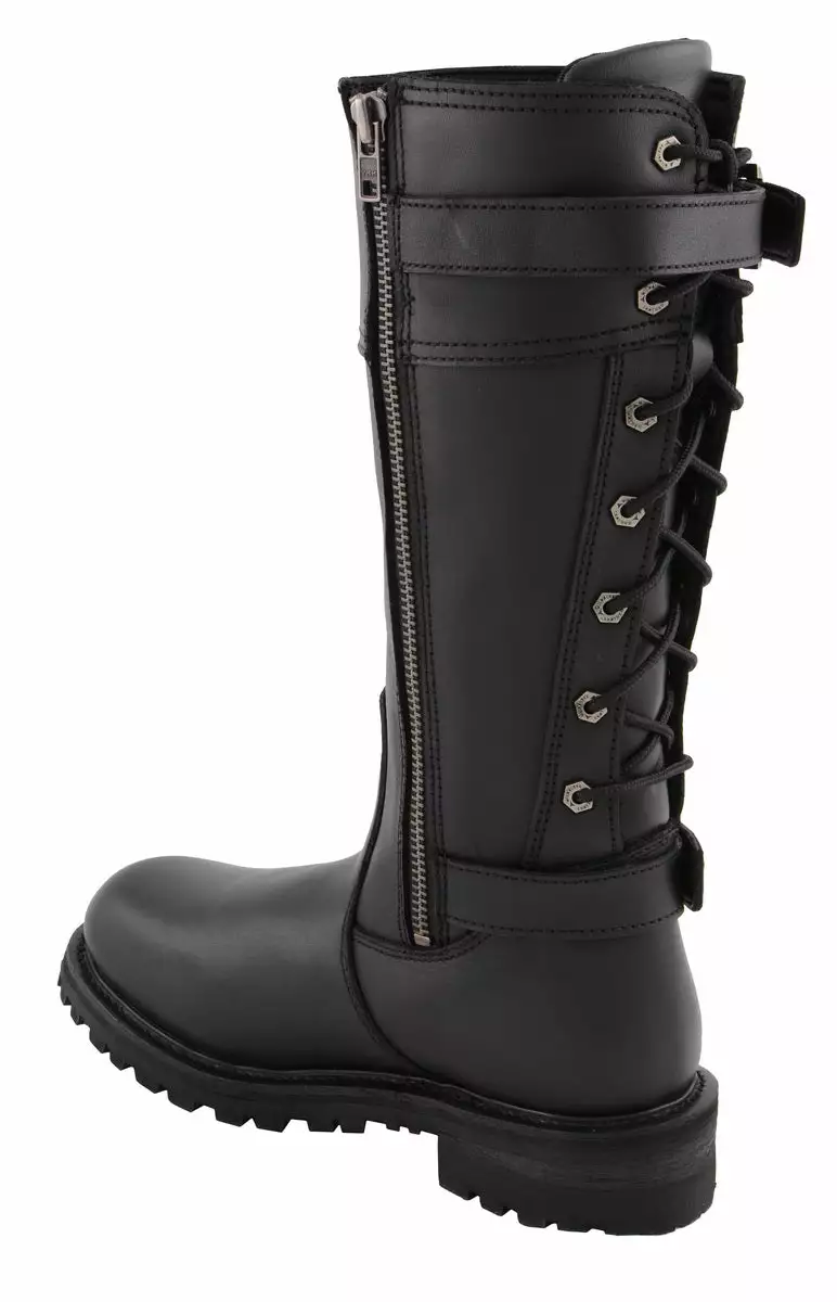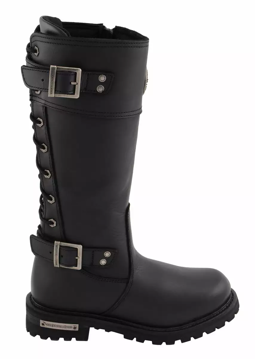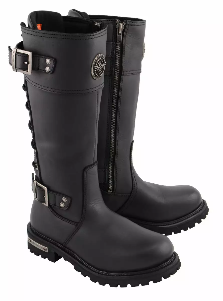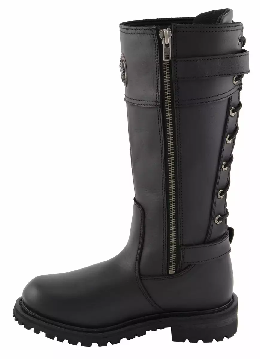 Milwaukee Leather MBL9385 Women’s Black 15-Inch Calf Laced Leather Riding Boots with Side Zipper