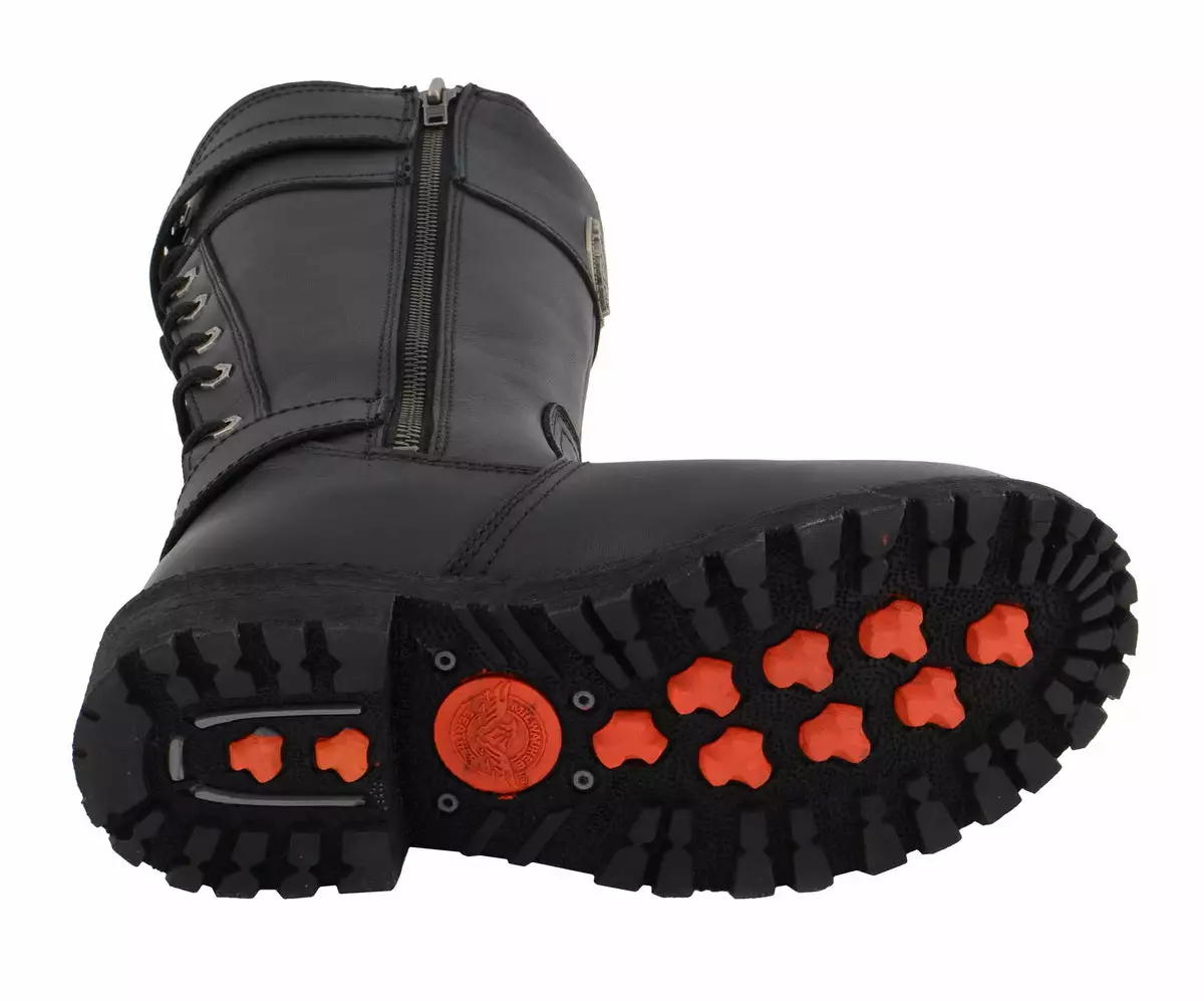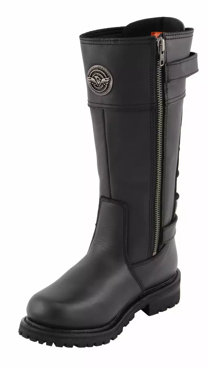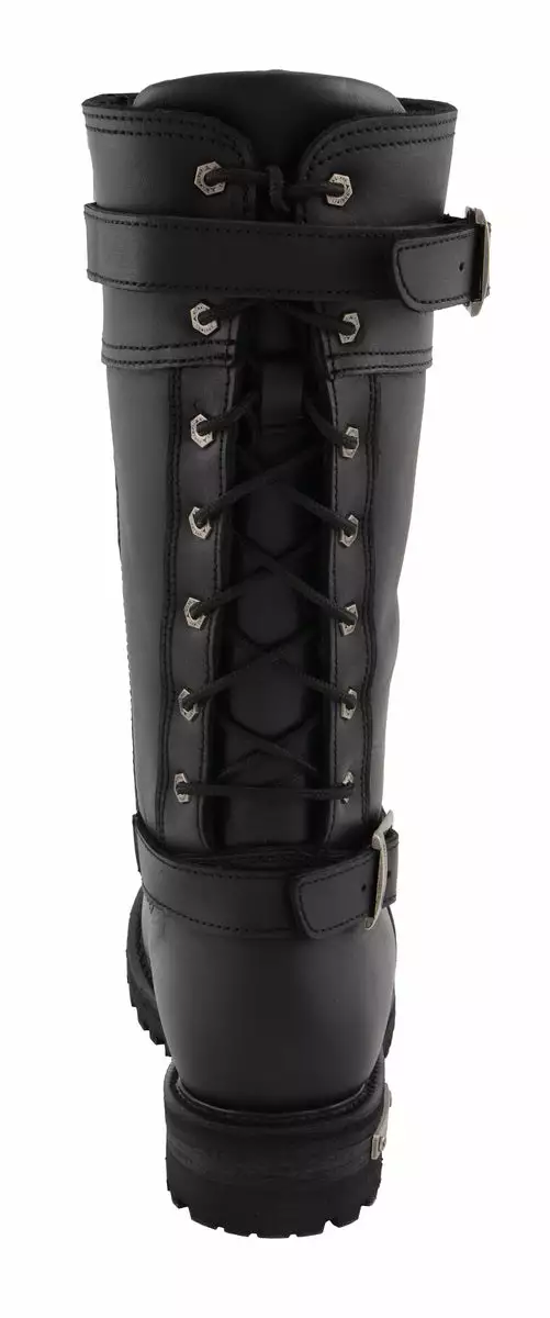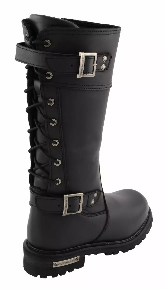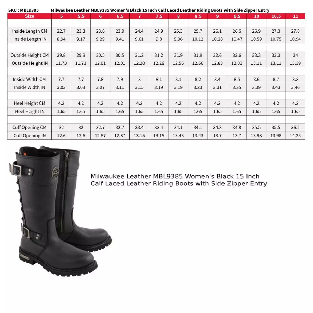 Milwaukee Leather MBL9385 Women’s Black 15-Inch Calf Laced Leather Riding Boots with Side Zipper