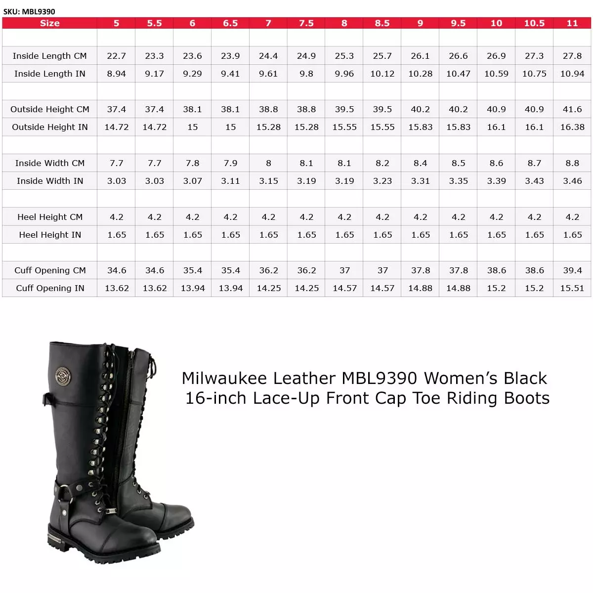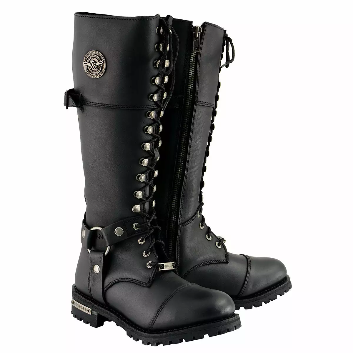 Milwaukee Leather MBL9390 Women’s Black 16-inch Lace-Up Front Cap Toe Riding Leather Boots