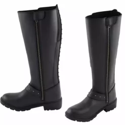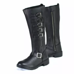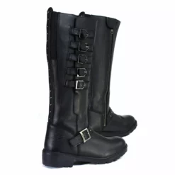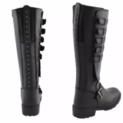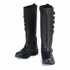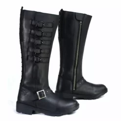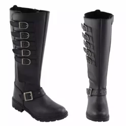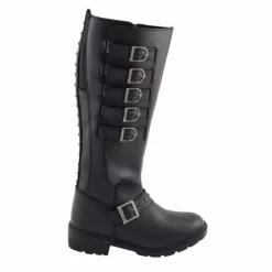Milwaukee Leather MBL9395 Women’s Black 17-Inch Side Strap Leather Riding Boots with Side Zipper