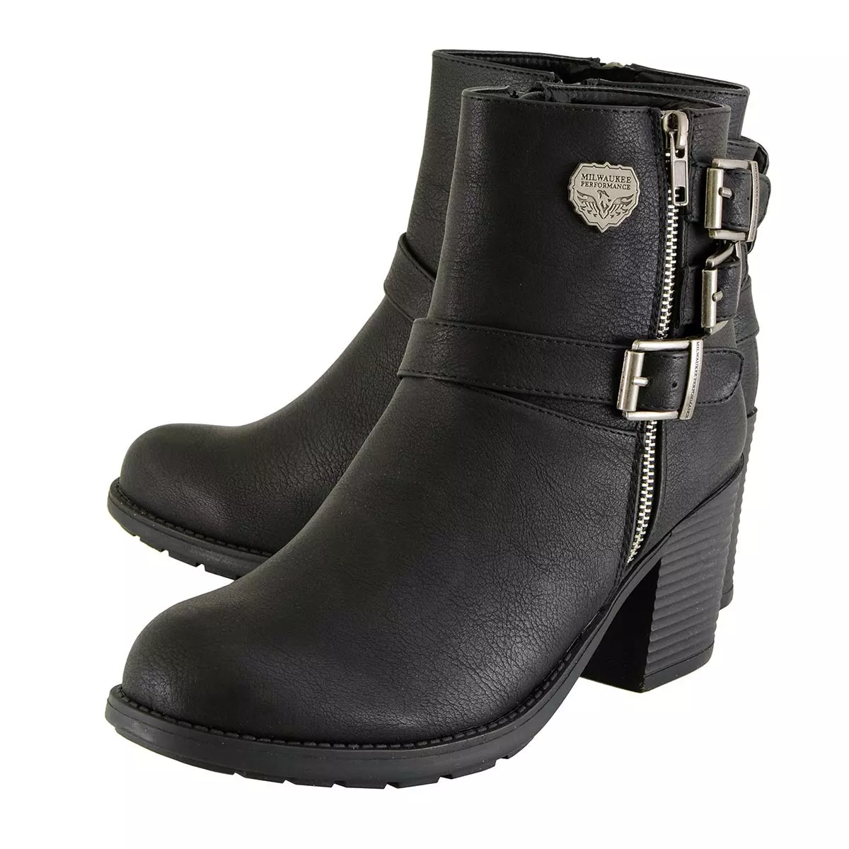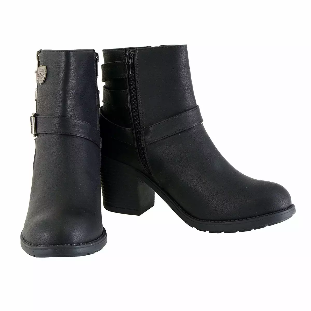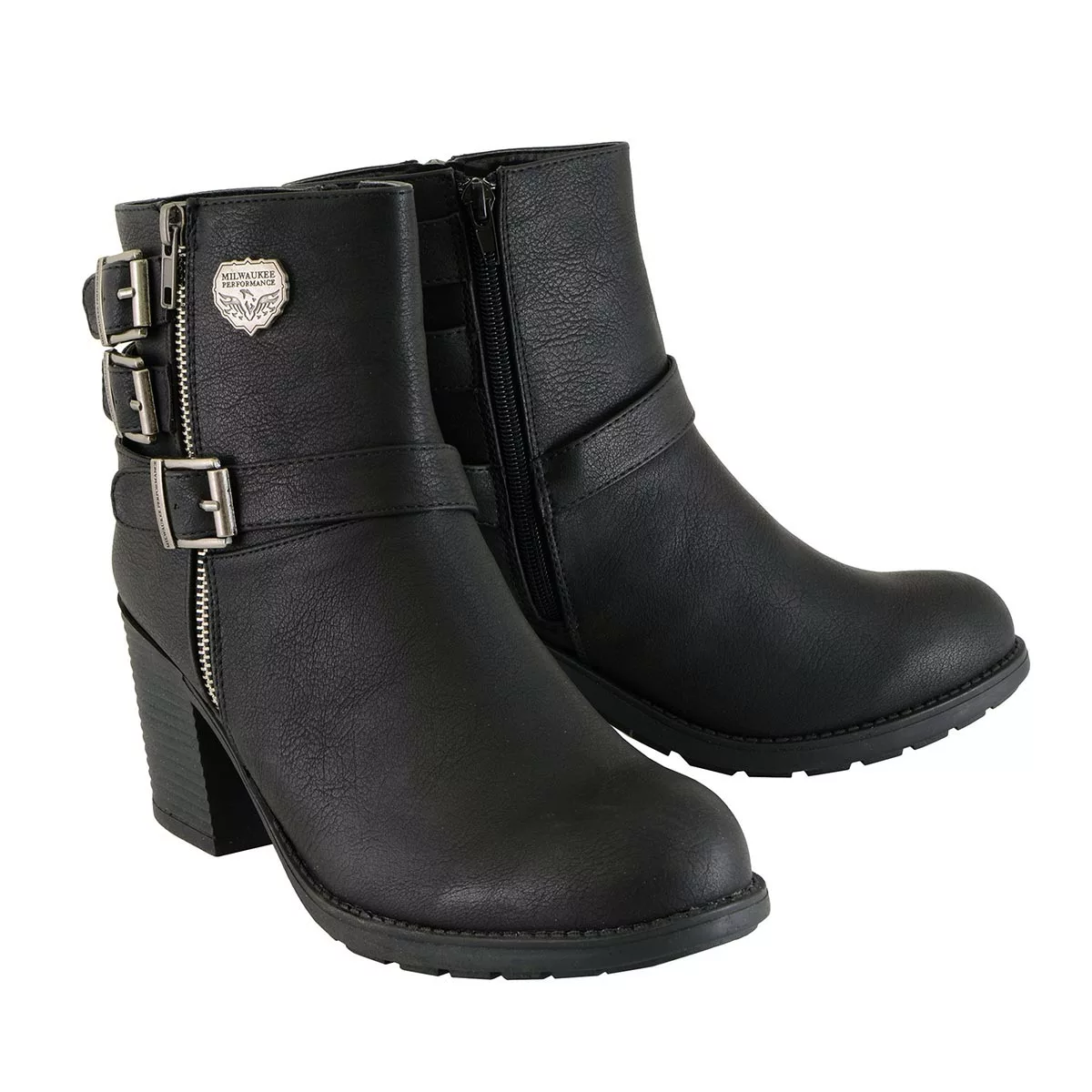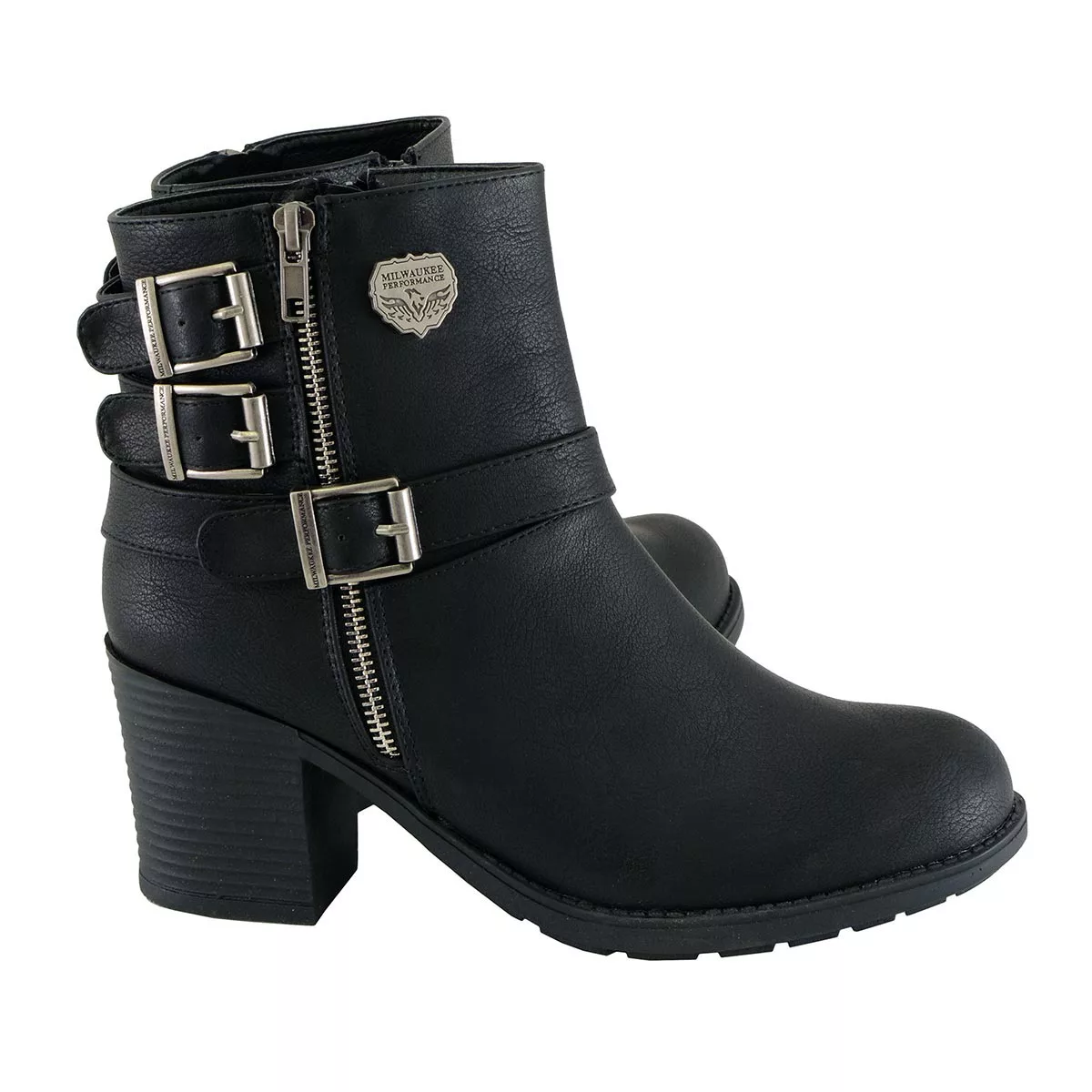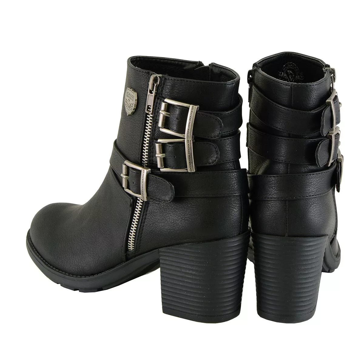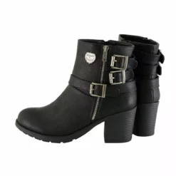 Milwaukee Leather MBL9405 Women’s Black Boots with Side Zipper and Triple Buckle Adjustment