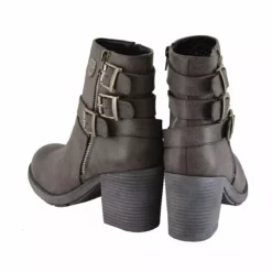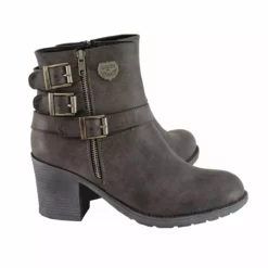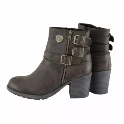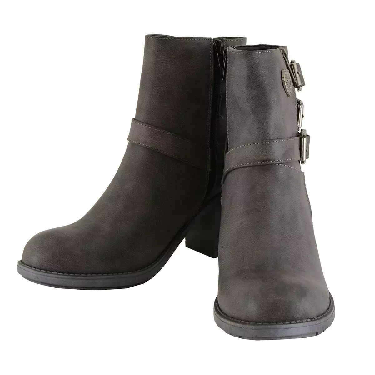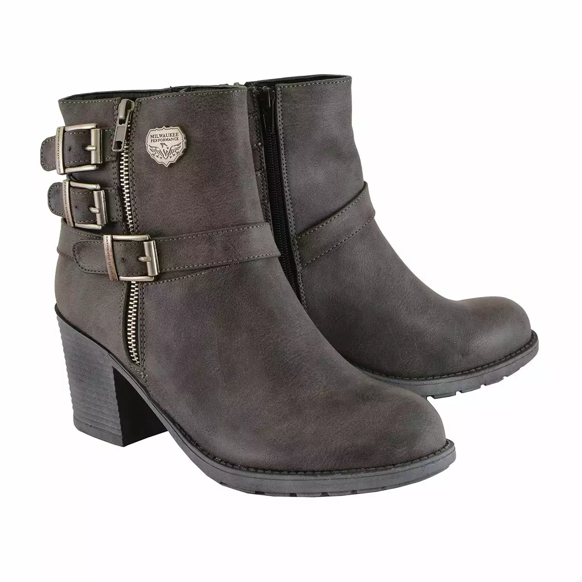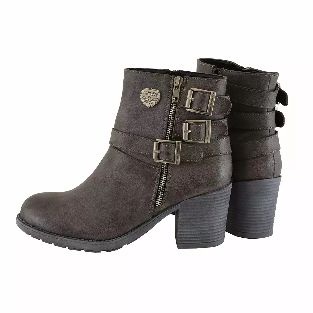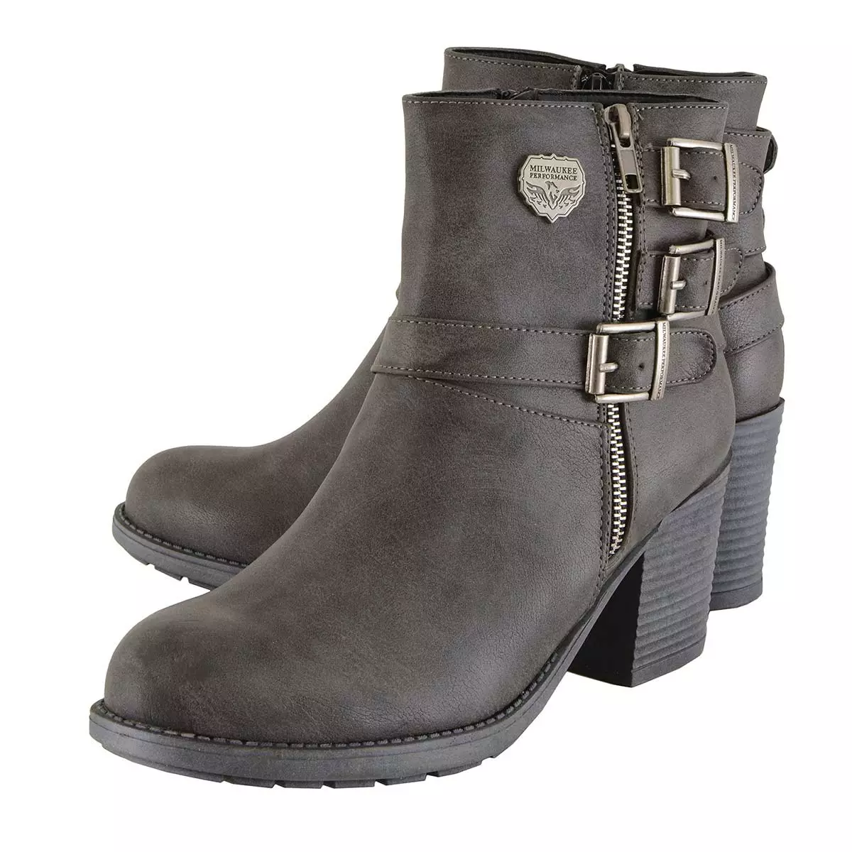 Milwaukee Leather MBL9406 Women’s Stone Grey 3-Buckle Leather Boots with Platform Heel