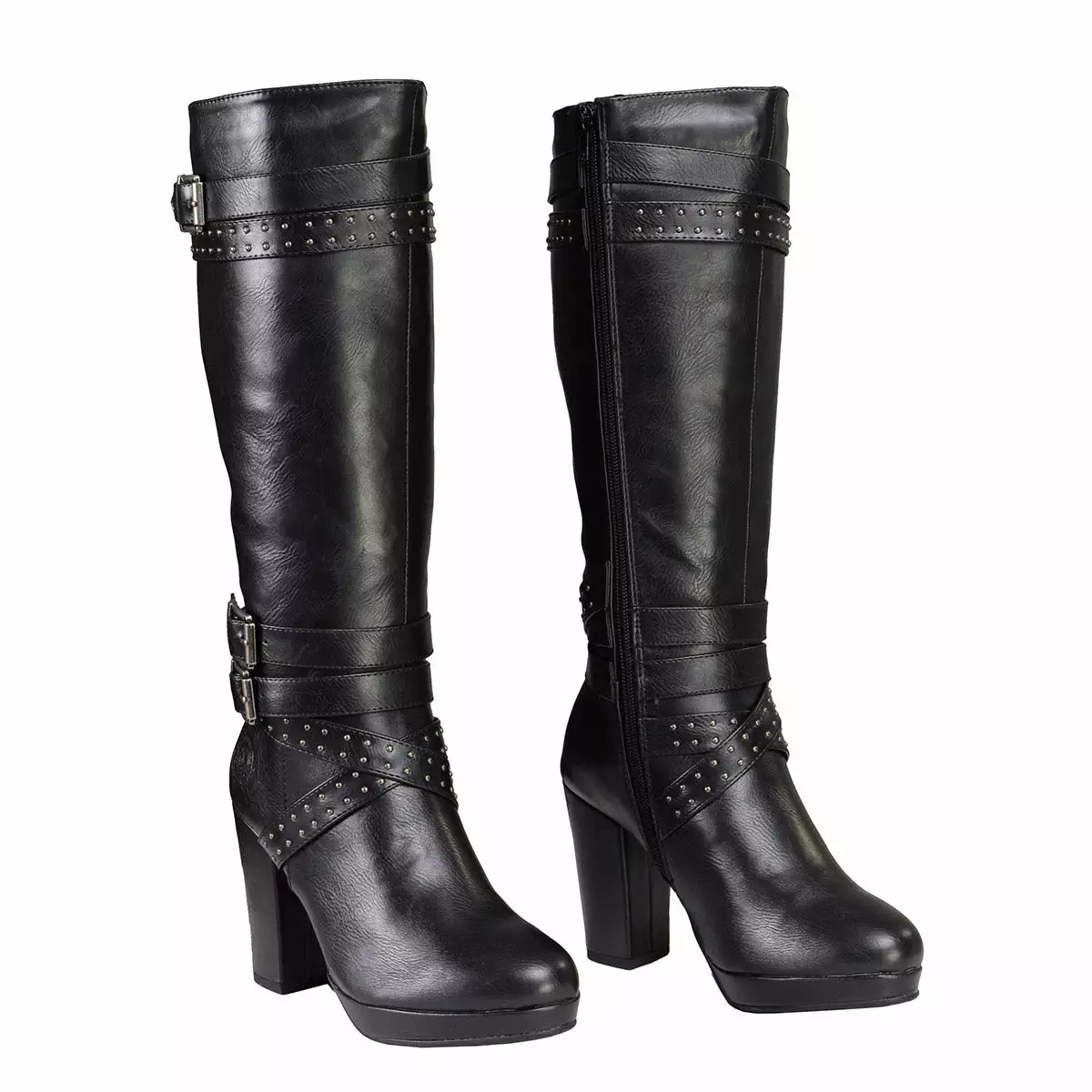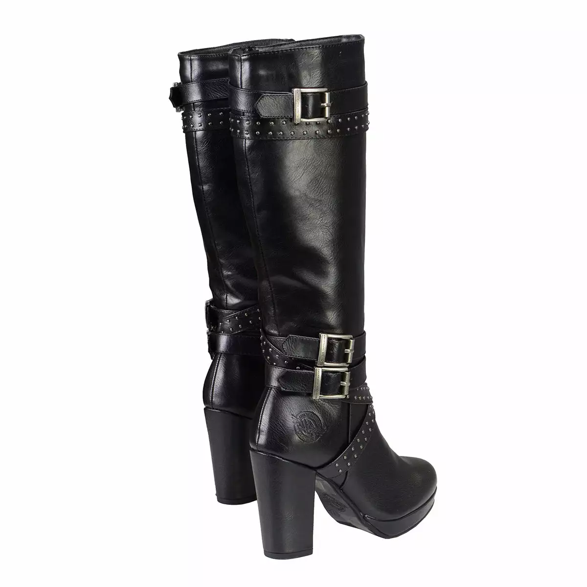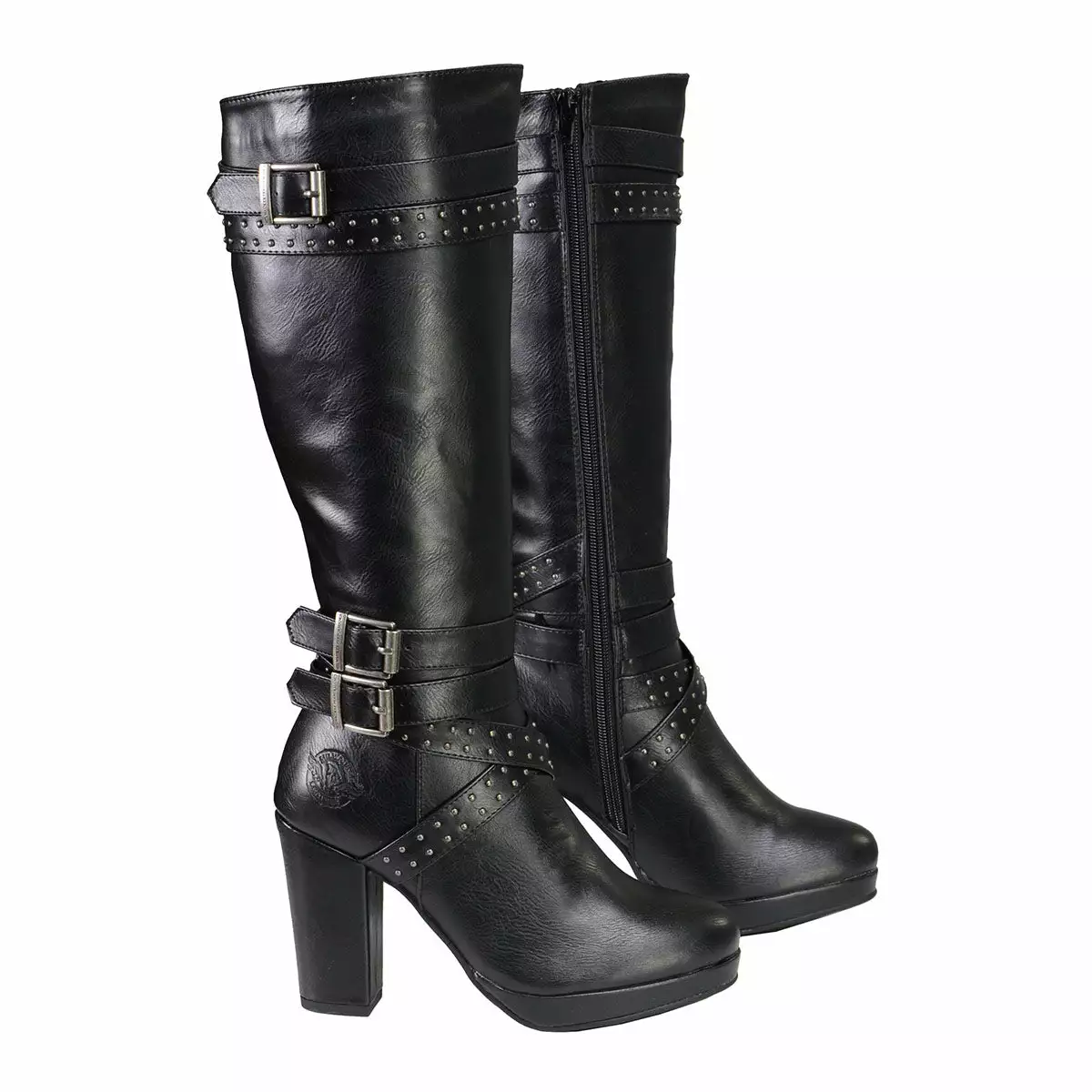 Milwaukee Leather Performance Apparel MBL9422 Womens Tall Black Studded Strap Boots with Platform Heel