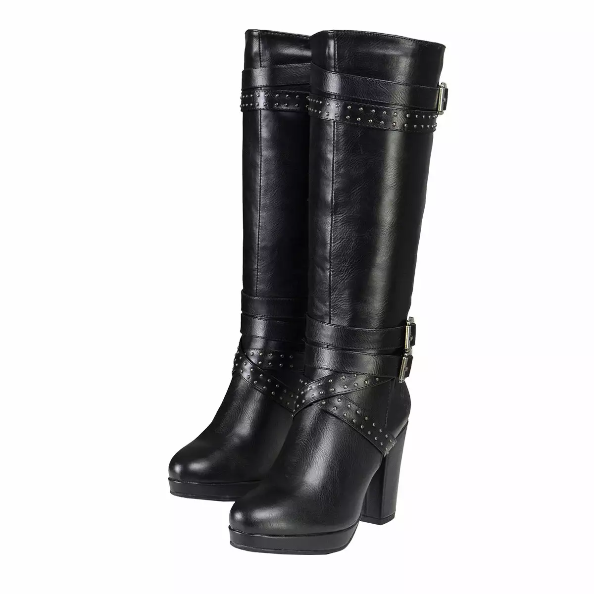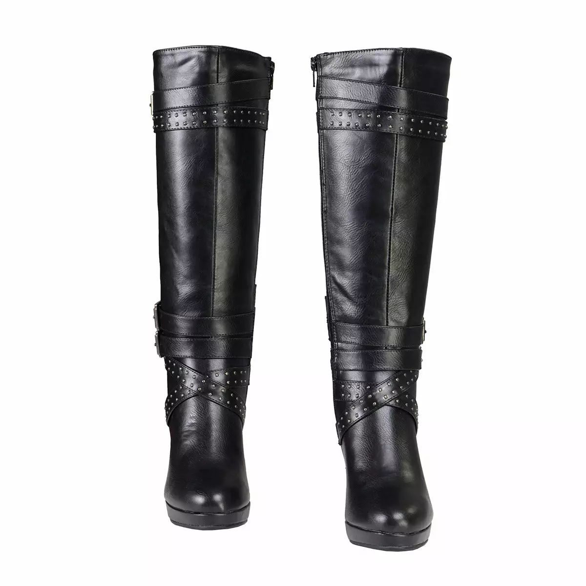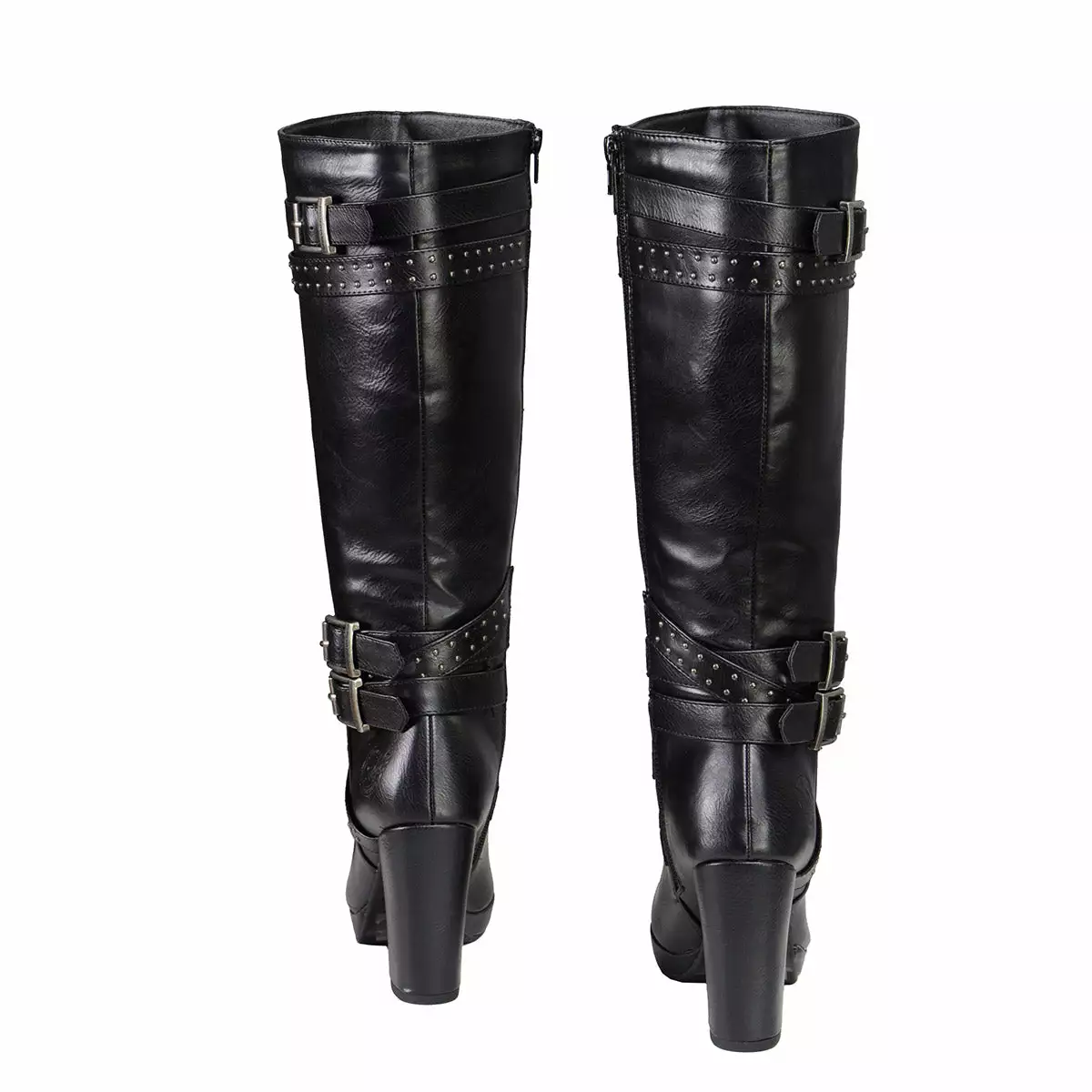 Milwaukee Leather Performance Apparel MBL9422 Womens Tall Black Studded Strap Boots with Platform Heel