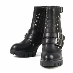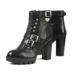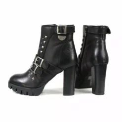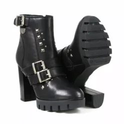 Milwaukee Leather MBL9456 Women’s Black Leather Platform Boots with Straps