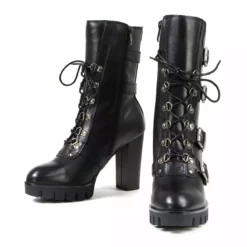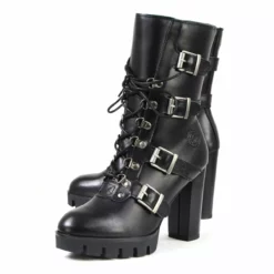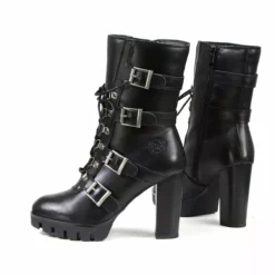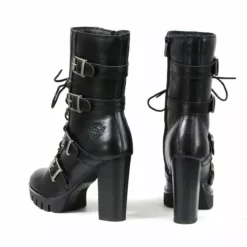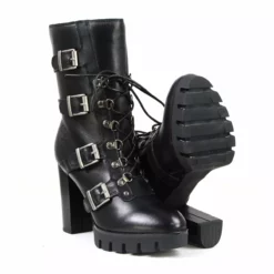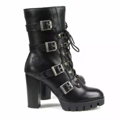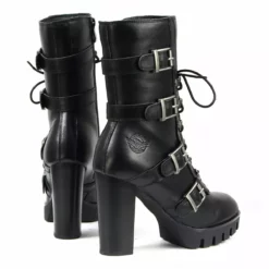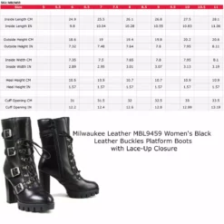 Milwaukee Leather MBL9459 Women’s Black Leather Buckles Platform Boots with Lace-Up Closure