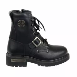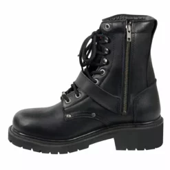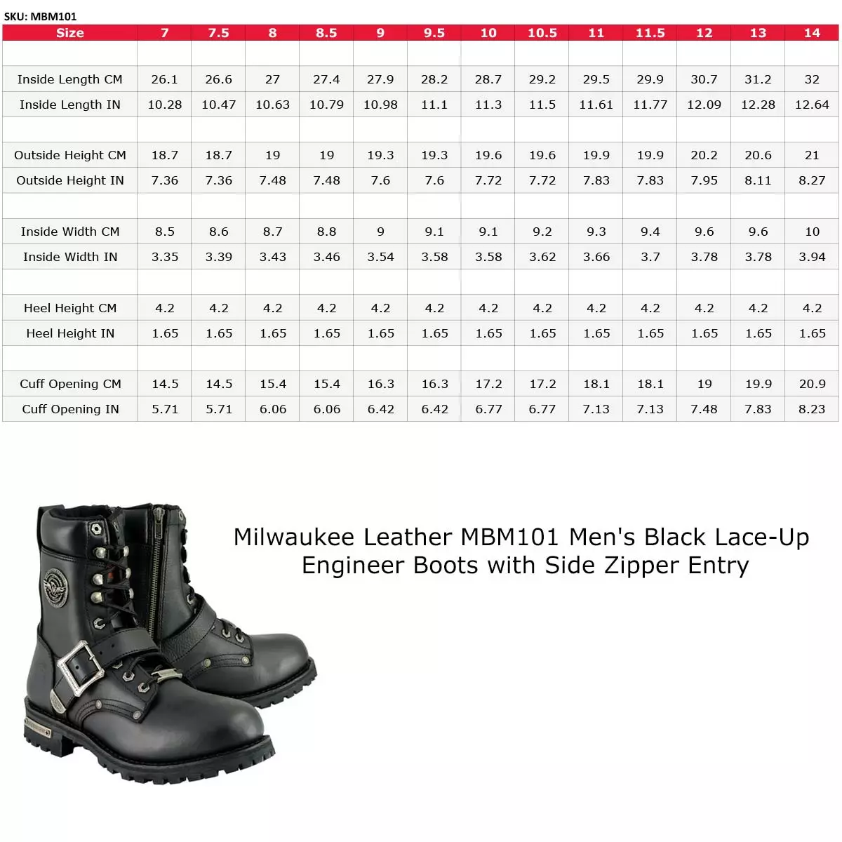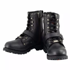 Milwaukee Leather MBM101 Men’s Black Leather Lace-Up Engineer Motorcycle Boots w/ Buckles and Side Zipper Entry